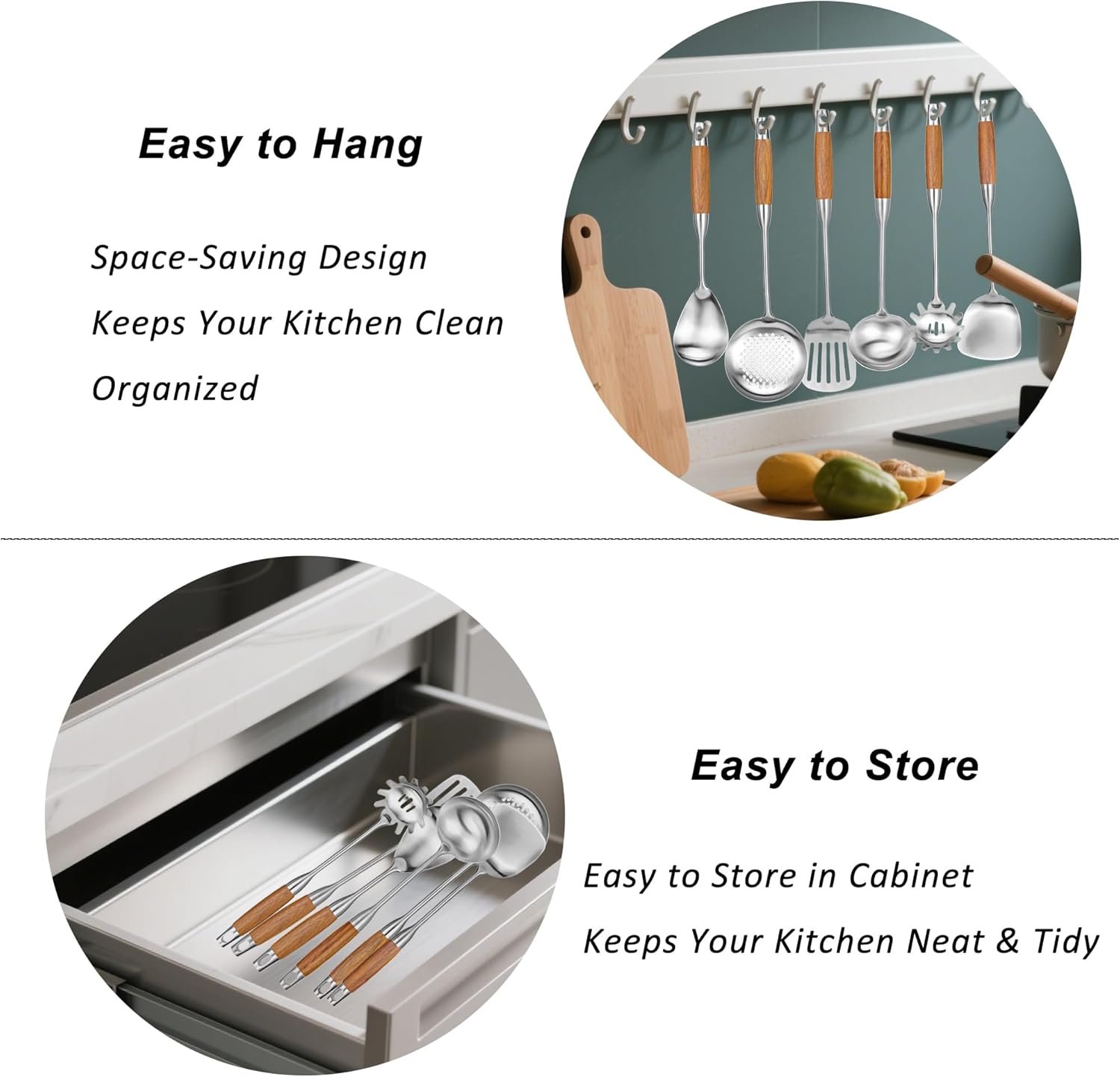 • Durable and Long-Lasting: The use of high-quality stainless steel and rosewood ensures the utensils are durable and can withstand regular use.