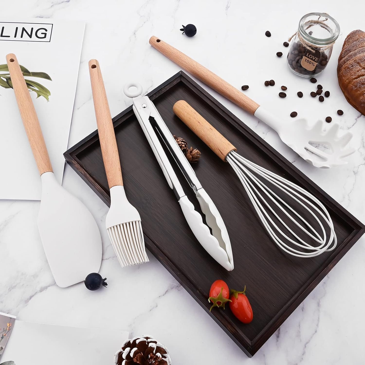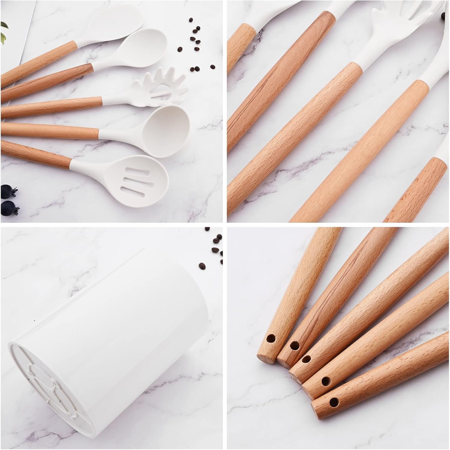 Our utensils are made from food-grade silicone material, ensuring they are healthy and safe for daily cooking. The non-stick surface makes them easy to clean by hand or in the dishwasher. The white utensils with a holder will brighten up your kitchen and keep it organized.