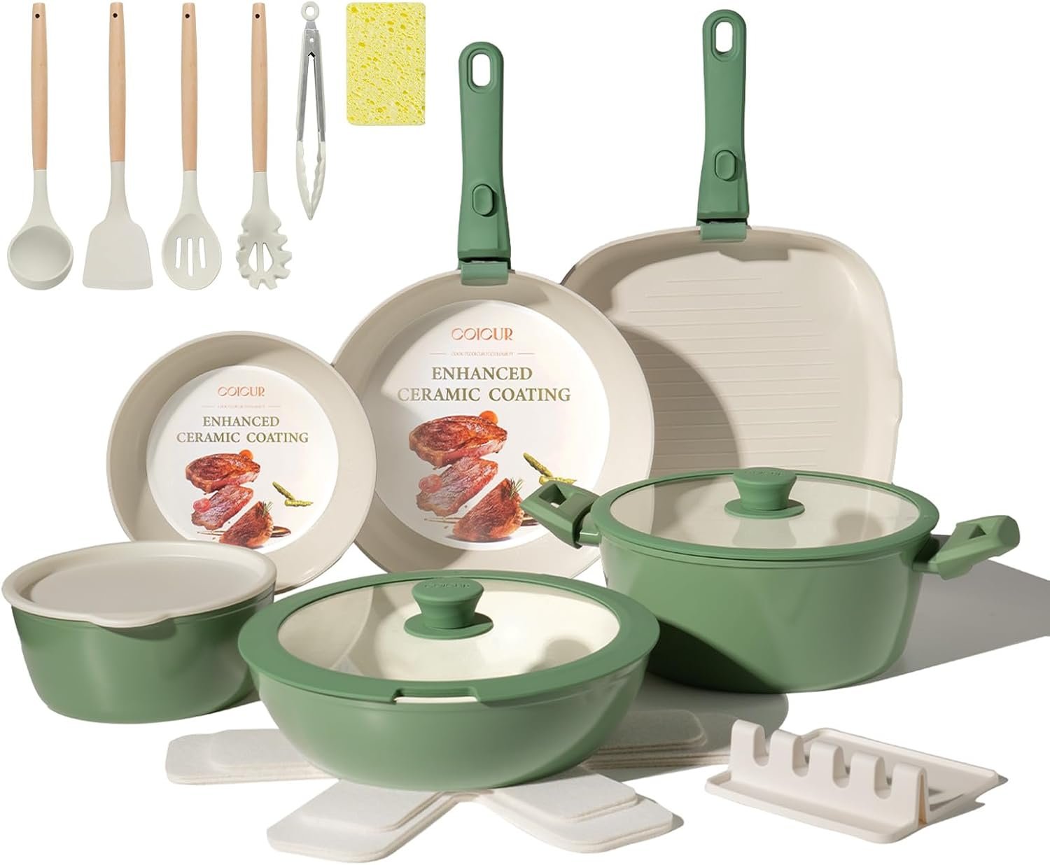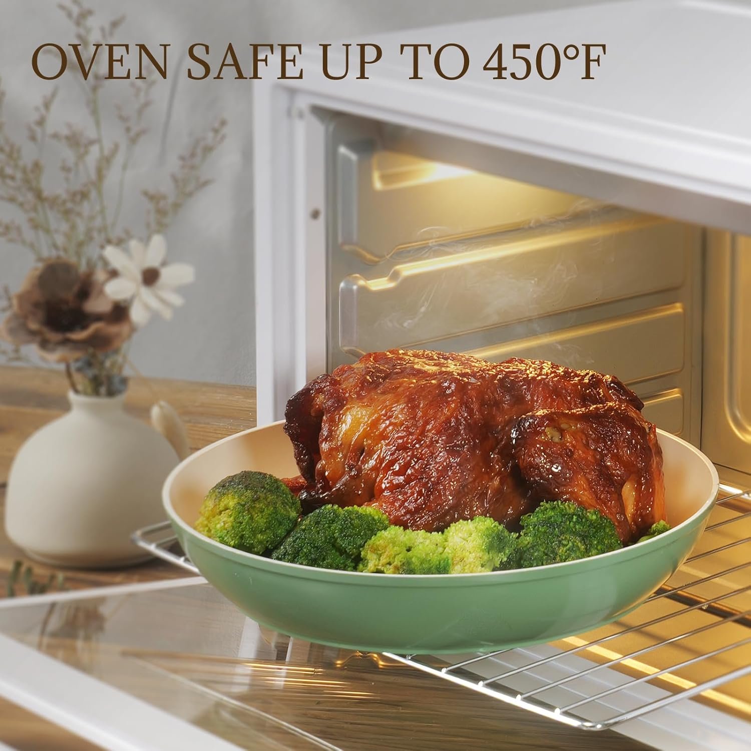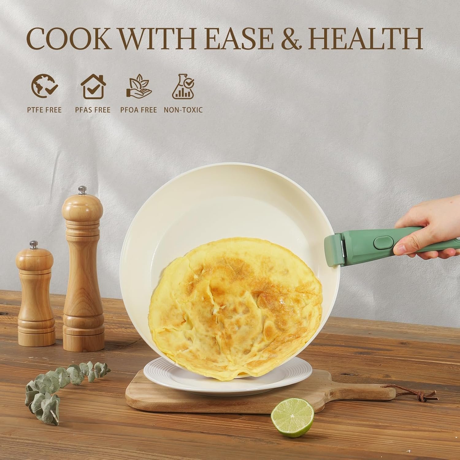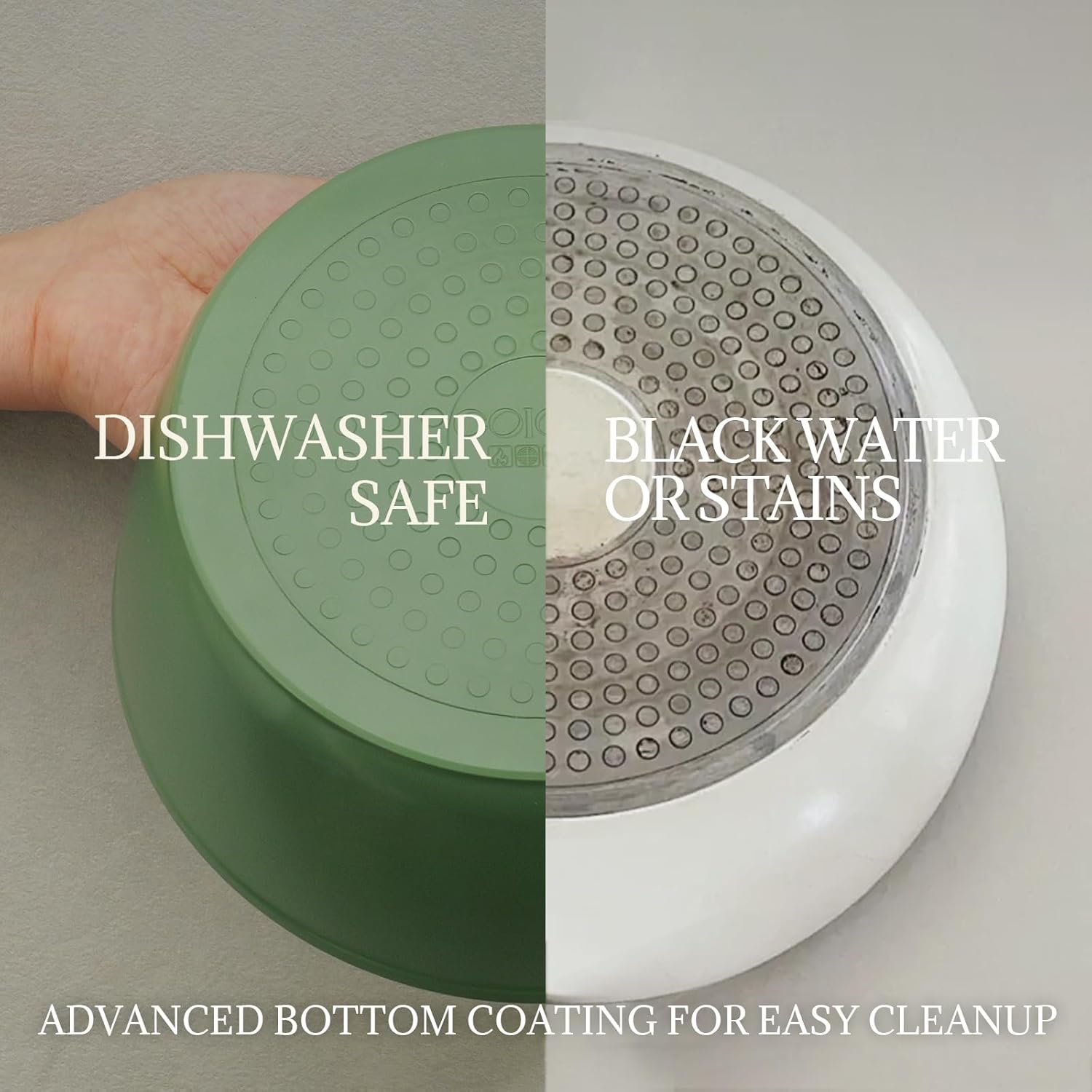 Experience the joy of cooking with our vibrant and functional cookware set, designed to make your cooking experience a delight. Our cookware is crafted with a PFAS/PTFE/PFOA-free natural ceramic coating, ensuring a non-stick surface for healthy cooking.
