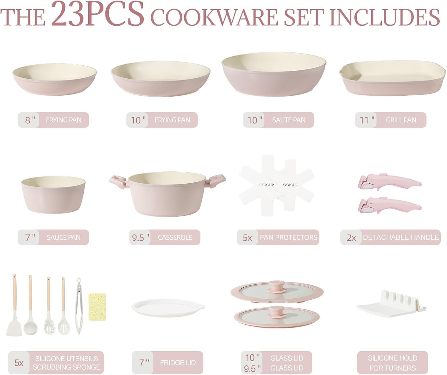 Our cookware set includes a sauté pan, pots, and pans, all crafted with the same high-quality non-stick coating and innovative design. The set is perfect for compact kitchens, RVs, and campers, and is easy to store and transport.