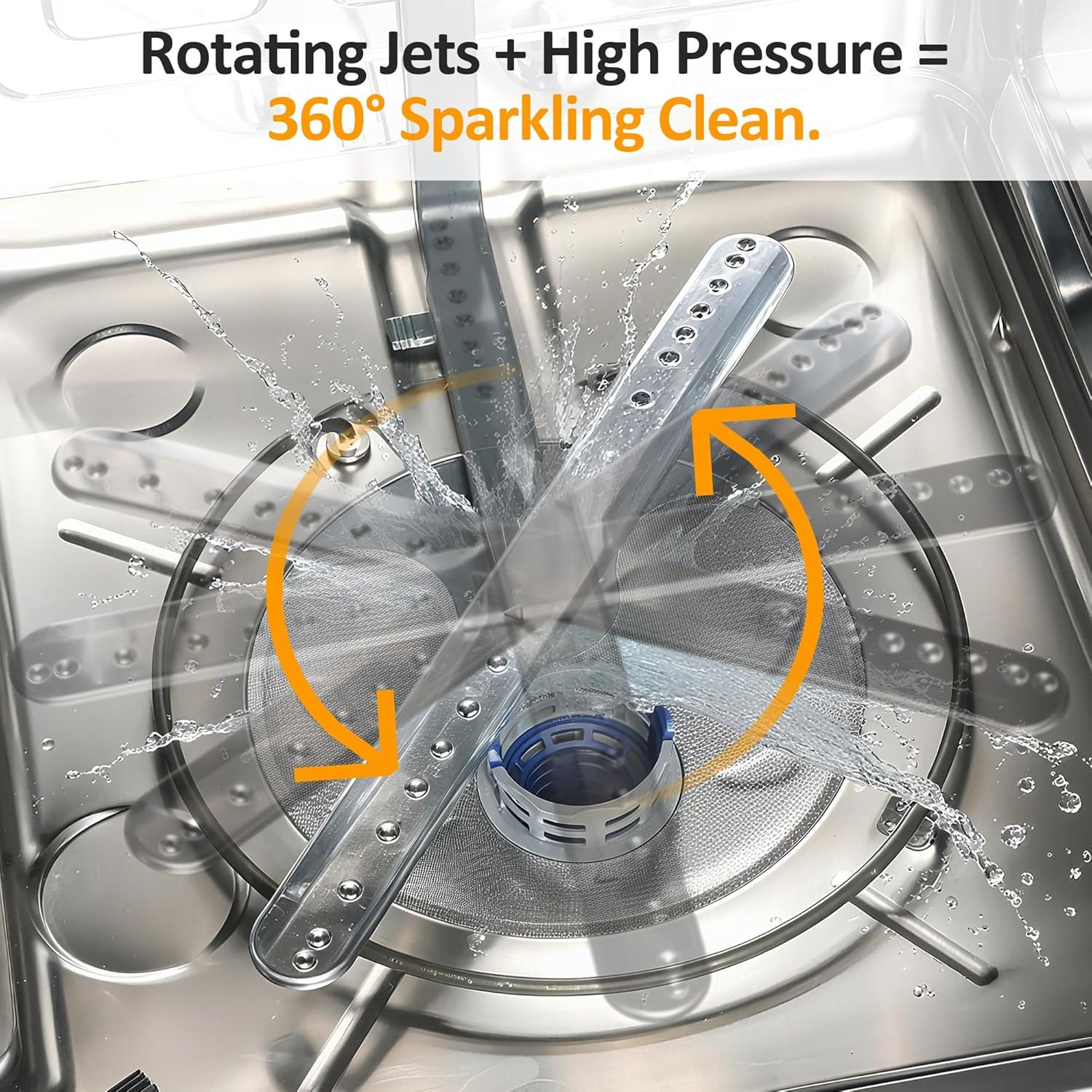 - High-efficiency spray arms and circulation system for thorough cleaning