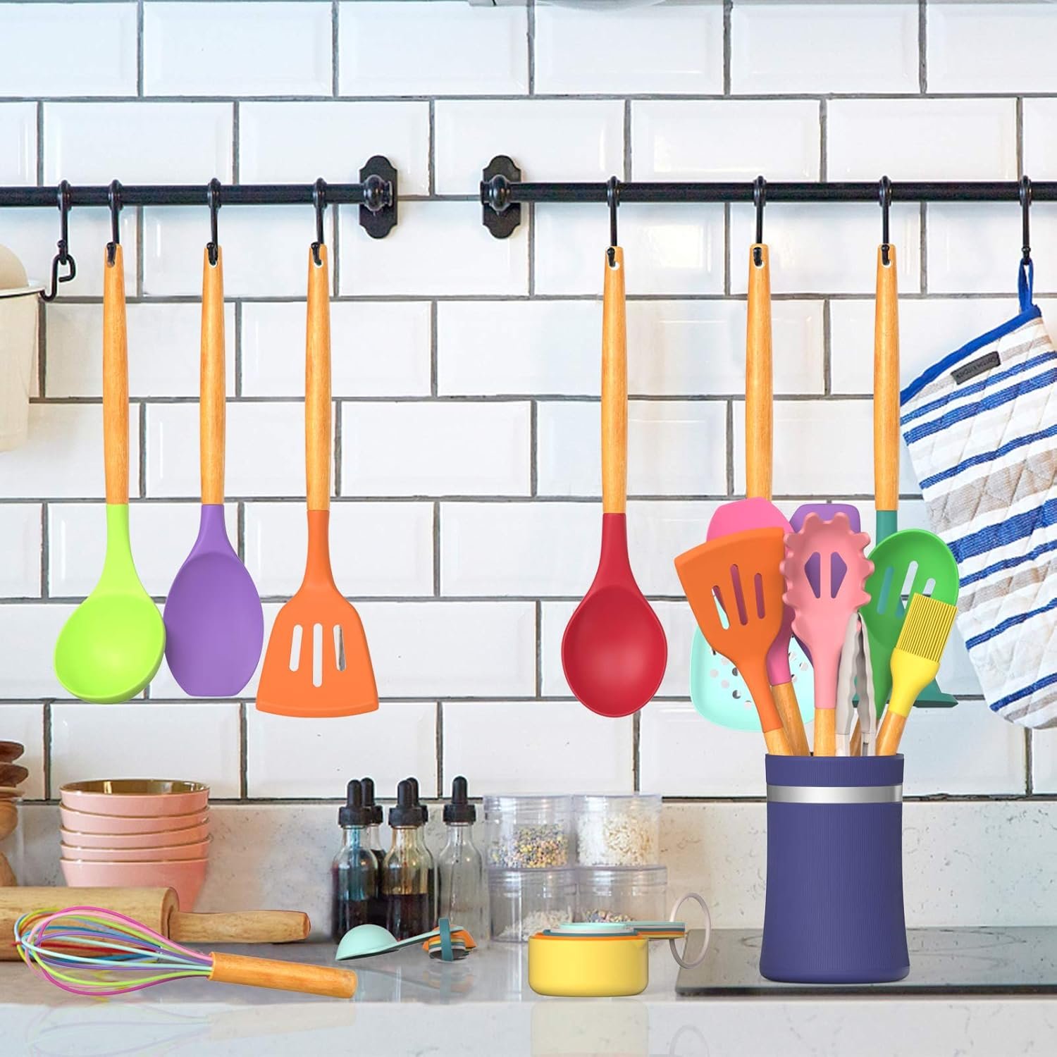 Experience the ultimate in kitchen convenience with our comprehensive 26-piece kitchen utensils set. This professional-grade set includes a flex spatula, soup ladle, serving spoons, pasta server, spatula turner, tongs, measuring cup and spoons, potato masher, whisk, and more. Whether you’re a culinary novice or an experienced chef, our set has everything you need to make cooking easier and more enjoyable.