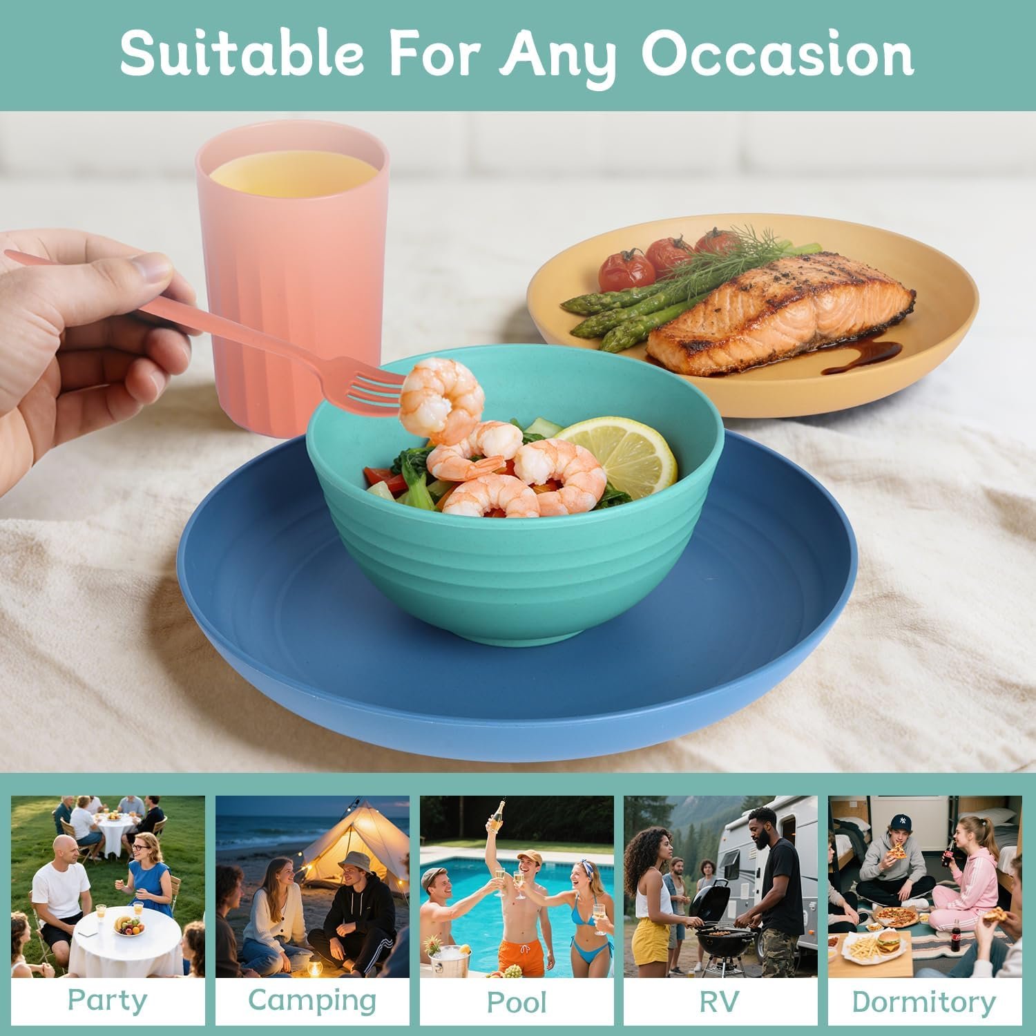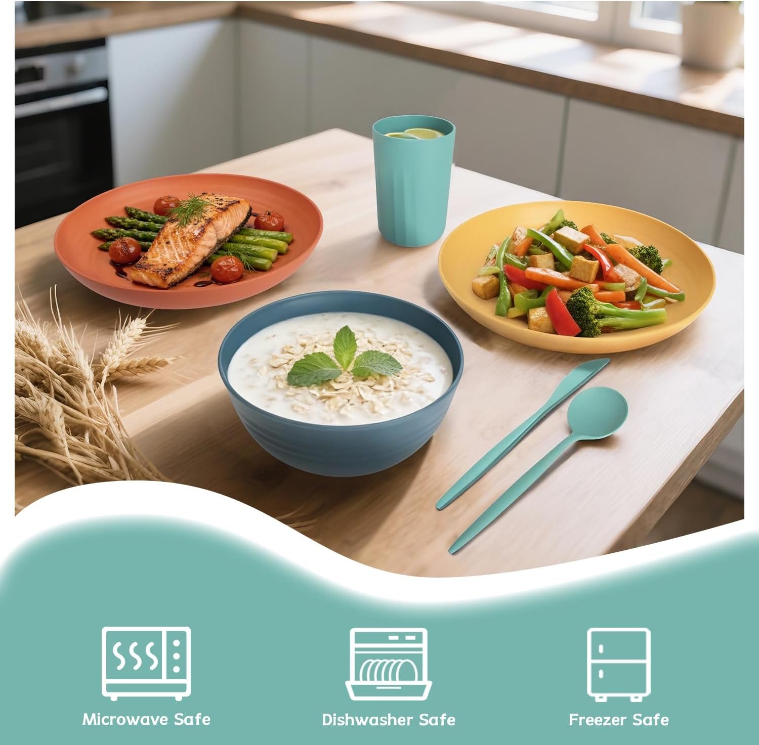 Inspired by nature, our wheat straw dinnerware embodies a commitment to love, care, and sustainability. Made from natural organic wheat straw fiber, our 28-piece dinnerware set is reusable, 100% BPA-free, non-toxic, and odorless.
