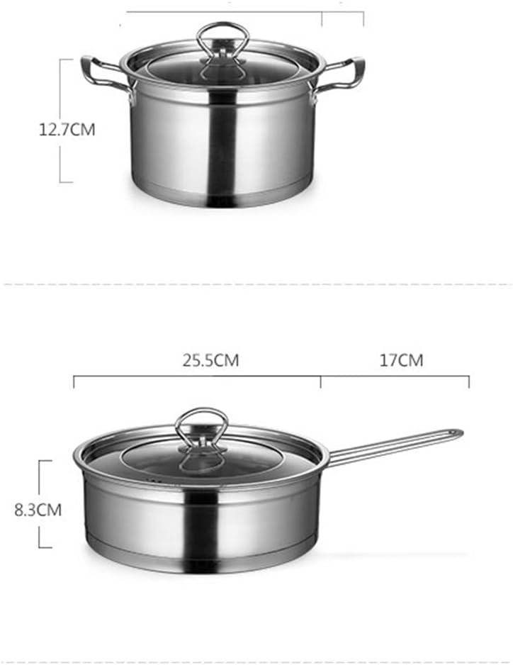 This cookware set is made of 201 stainless steel, providing a durable and environmental-friendly cooking solution. The three-layer bottom ensures uniform heat absorption, making it easy to control the temperature and heat food quickly. The transparent lid allows you to monitor the heating state of your food at all times, preserving the deliciousness and flavor.