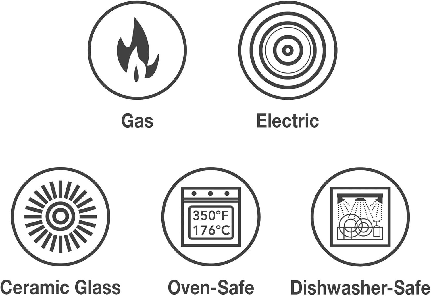 • Dishwasher-safe and compatible with gas, electric, and ceramic glass cooktops