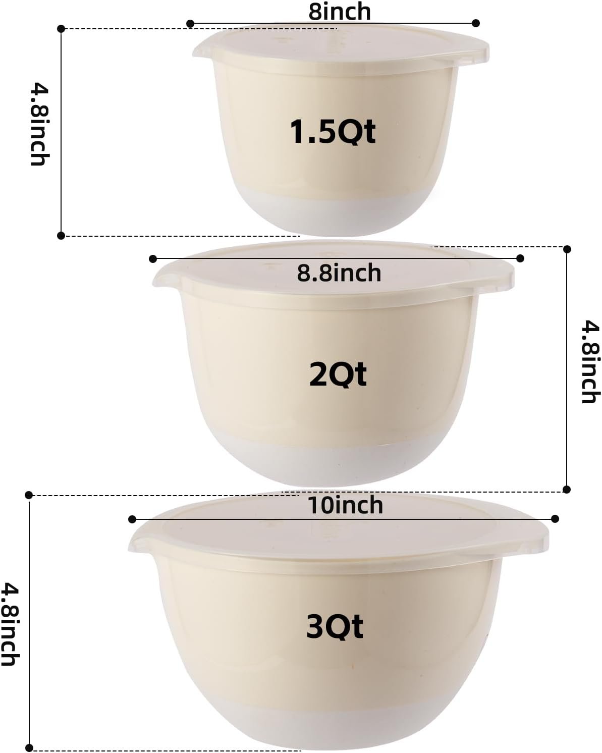 This mixing bowls set is a must-have for any kitchen, especially for bakers and chefs. The set includes three different sizes of bowls, each with a non-slip base, pourable lip, and grippy handle, making it easy to mix and pour ingredients.