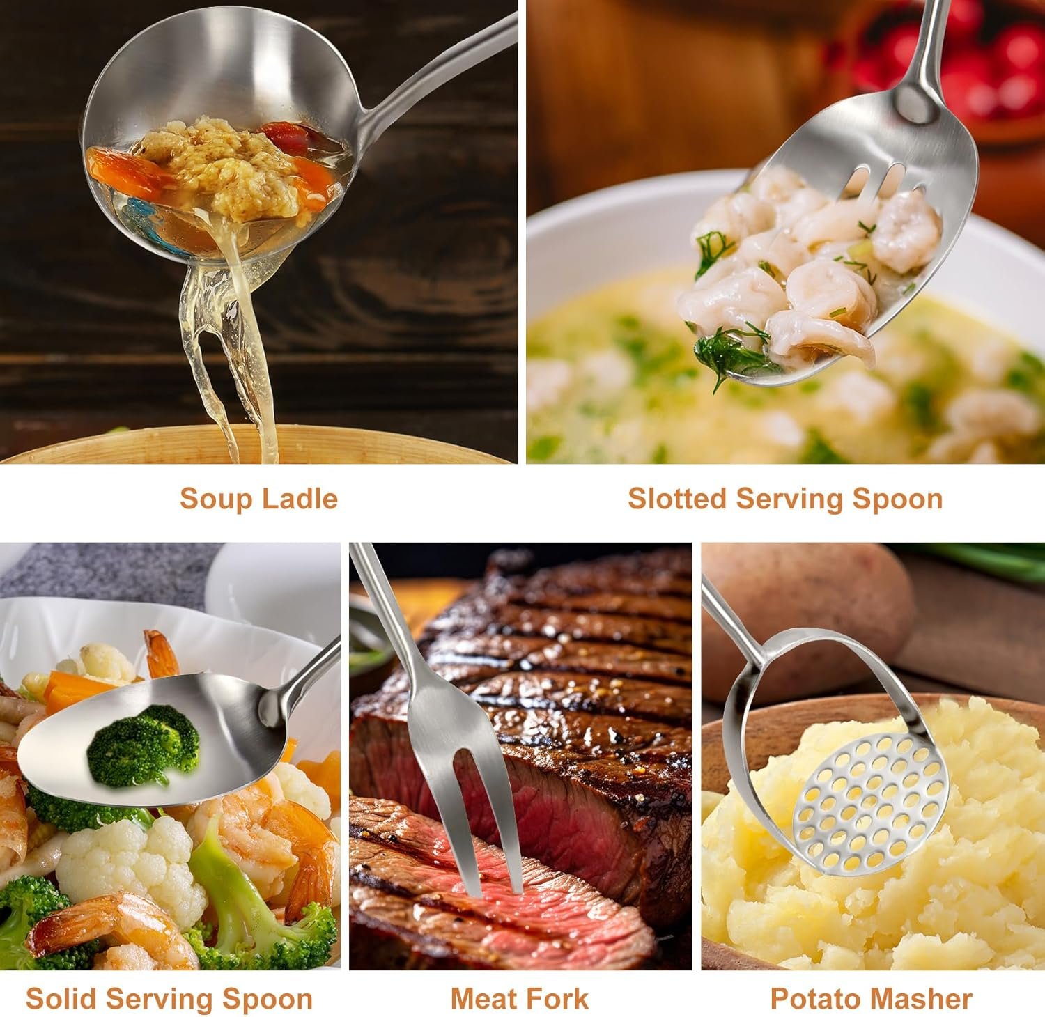 Be the first to review “304 Stainlss Steel Kitchen Utensils Set, 12 Pcs Long Metal Utensils Set with Potato Masher, Spoon, Ladle, Skimmer, Turner, Pasta Server, Tongs etc(Dishwasher Safe)” Cancel reply
