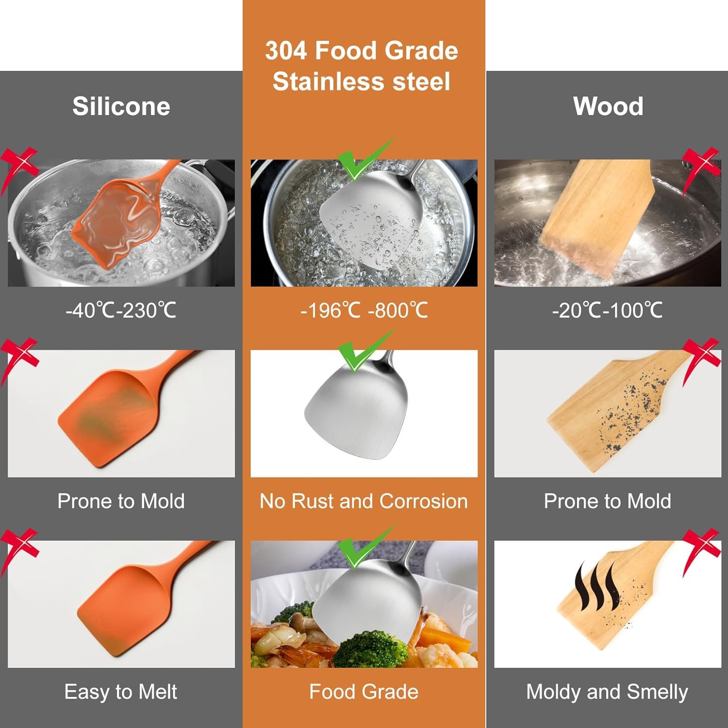 • DURABLE & ANTI-RUST: Crafted from heavy-duty 304 stainless steel for long-lasting performance