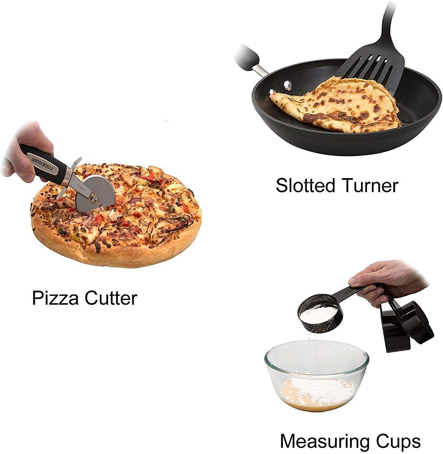 38-piece Kitchen Utensils Set Home Cooking Tools Gadgets Turners Tongs Spatulas Pizza Cutter Whisk Bottle Opener, Graters Peeler, Can Opener, Measuring Cups Spoons (Black)