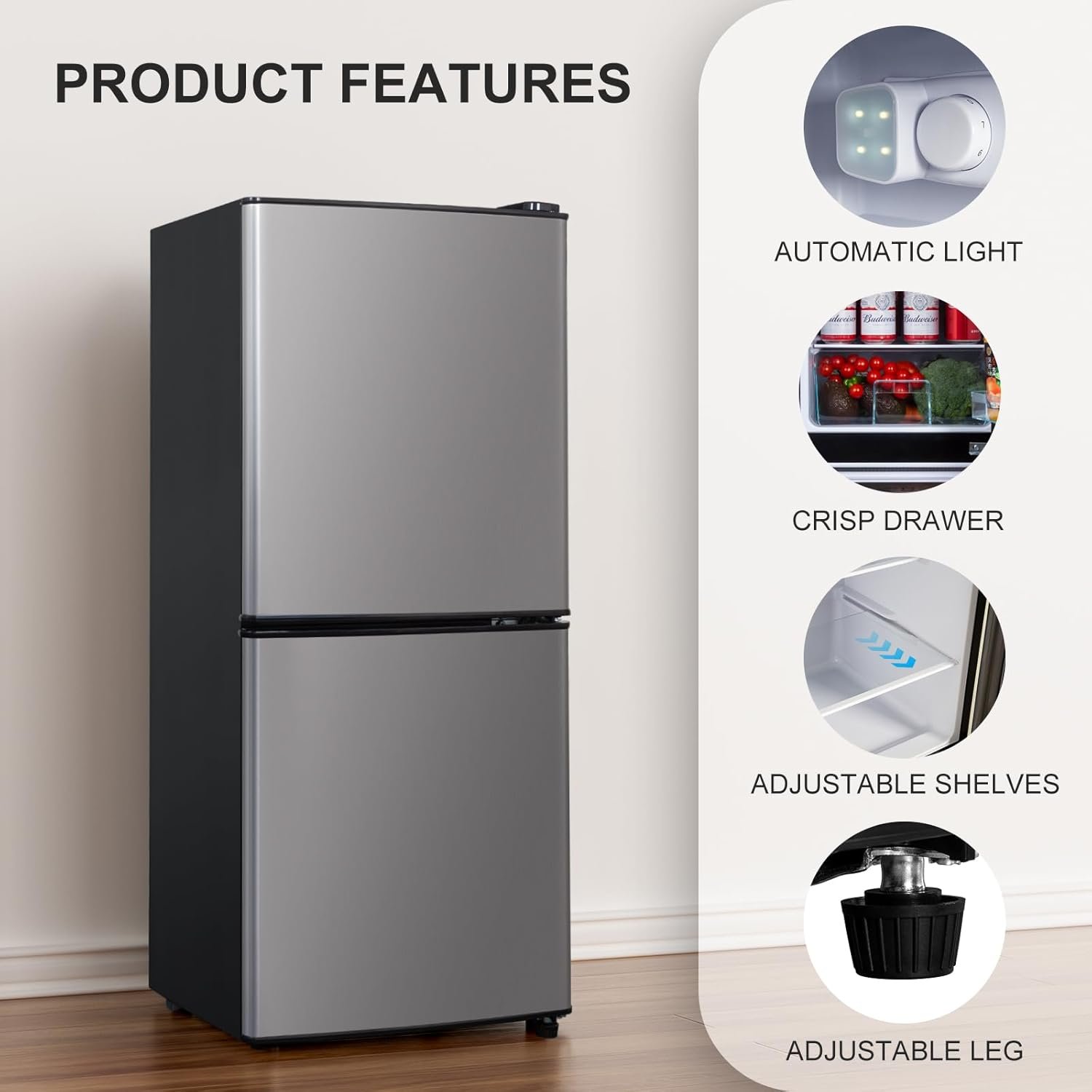 4.2 Cu Ft Mini Fridge for Bedroom, 2 Door Small Fridge, 7 Level Thermostat, LED Light, Small Refrigerator for Bedroom, Office, Dorm