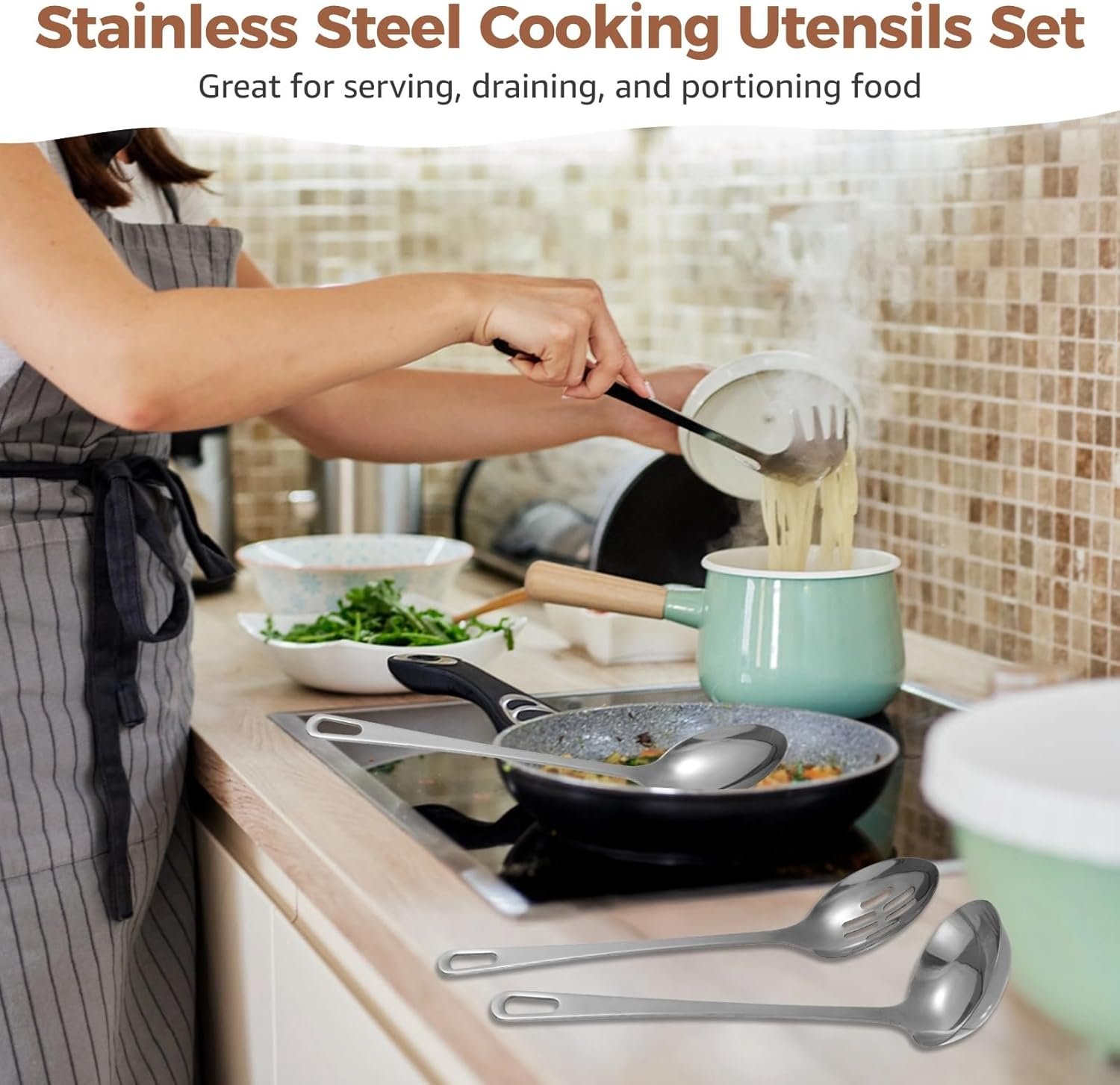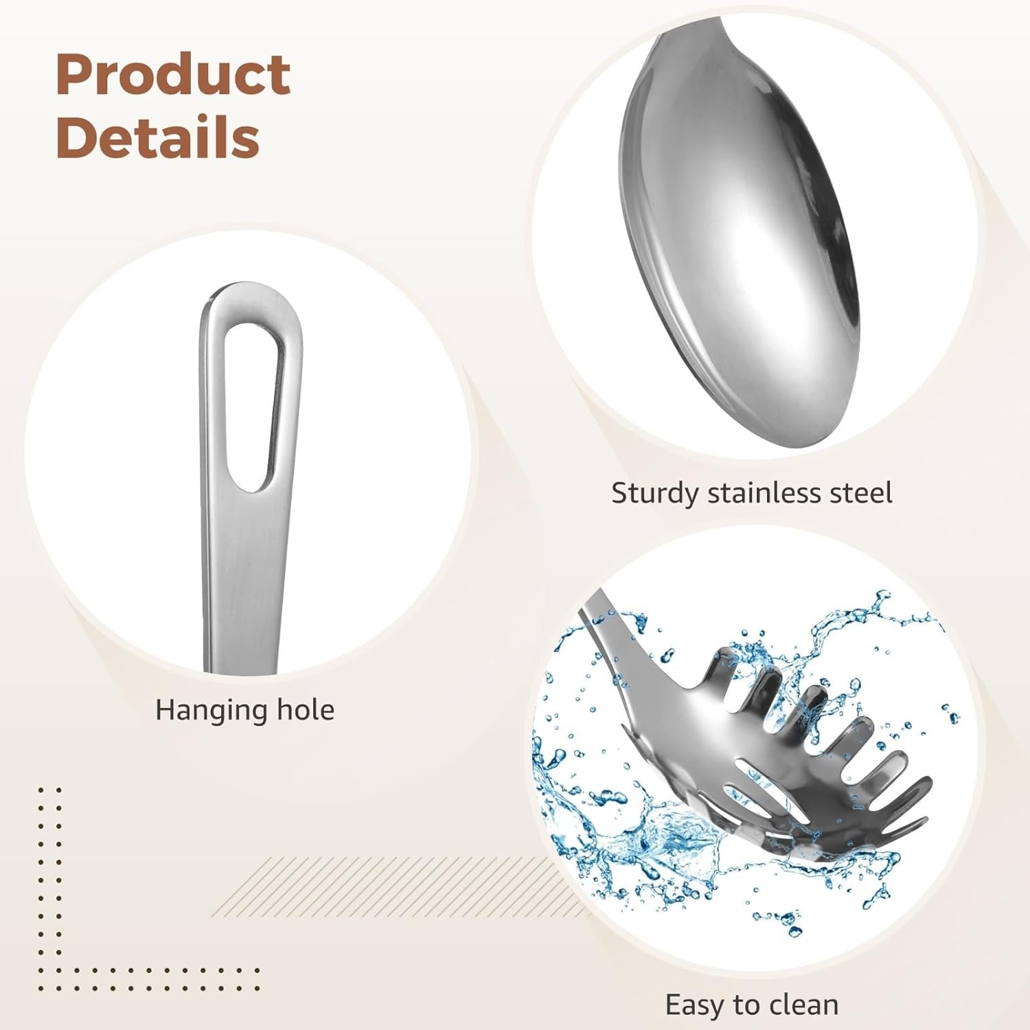 - Easy & Comfortable: The smooth stainless steel surface makes these utensils easy to clean, and the ergonomic handle ensures a secure, comfortable grip for effortless control.
