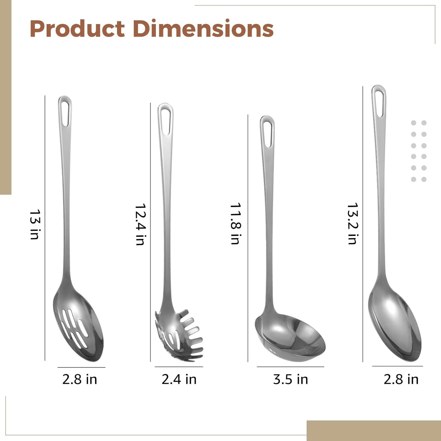 - Package Includes: 1 x Ladle, 1 x Solid Serving Spoon, 1 x Slotted Serving Spoon, 1 x Pasta Server