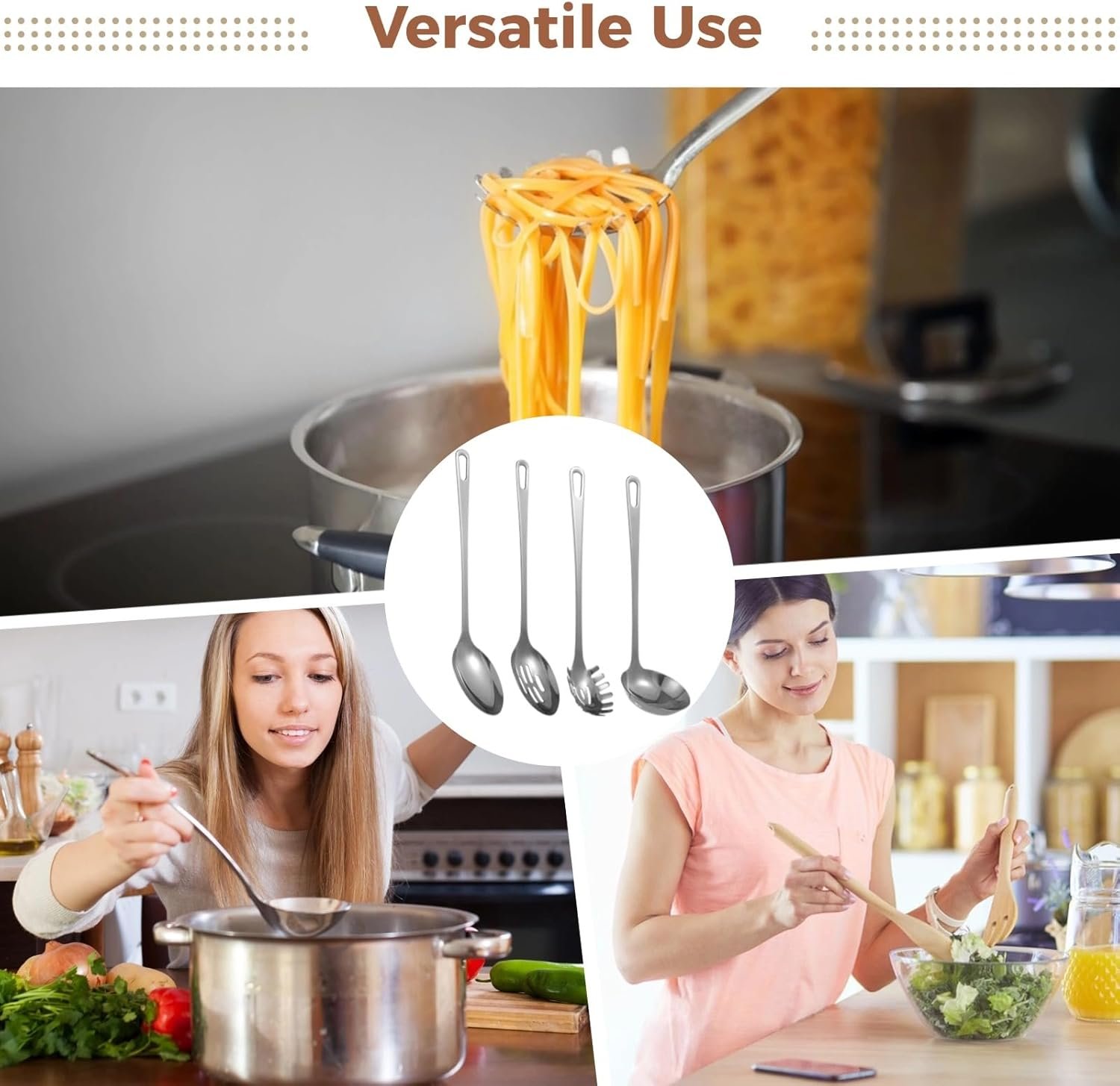 - Complete 4-Piece Set: Includes a ladle, slotted serving spoon, solid serving spoon, and pasta server, perfectly sized for everyday cooking and serving needs.