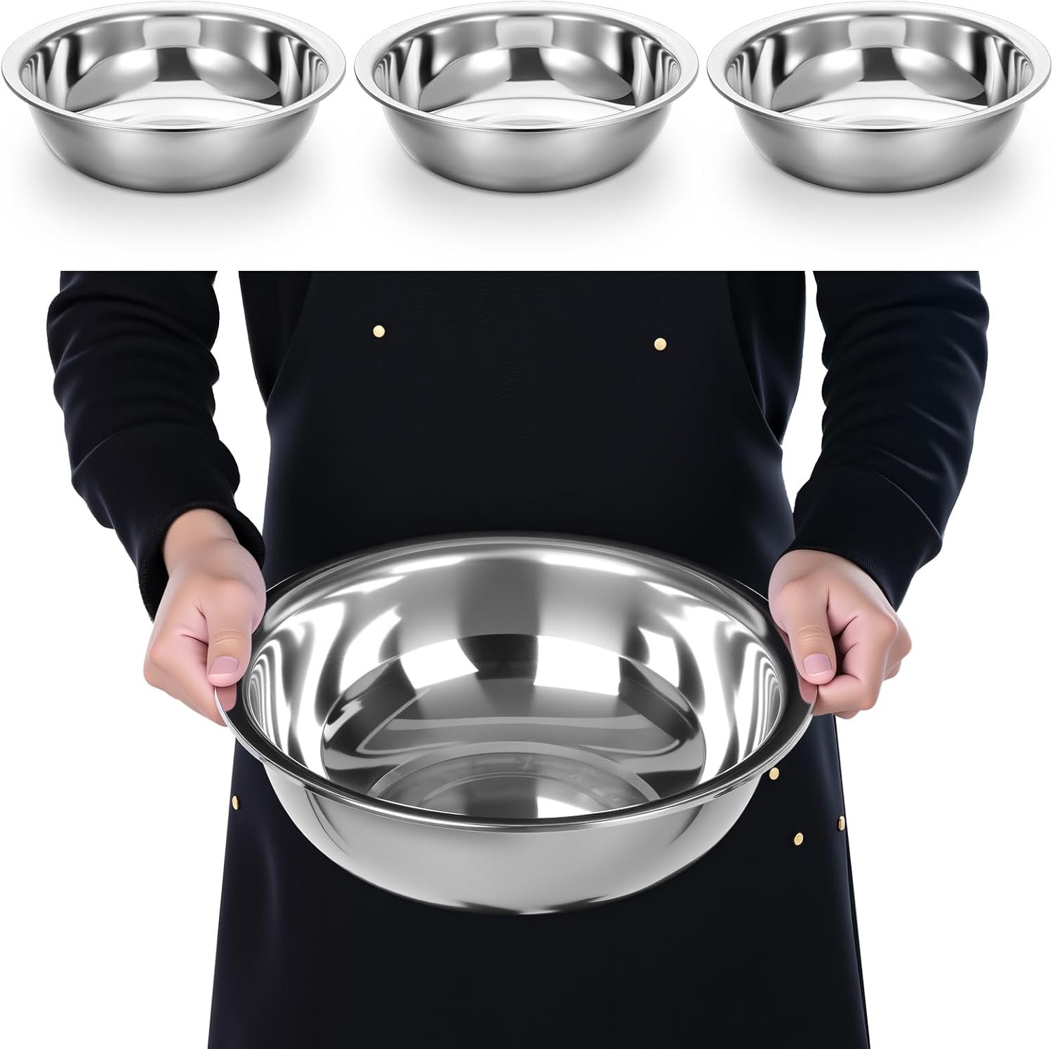 The bowls are crafted from high-quality stainless steel, resisting rust and corrosion, and offering lasting durability. The robust material ensures reliable performance in both home kitchens and commercial settings, supporting frequent use without damage.