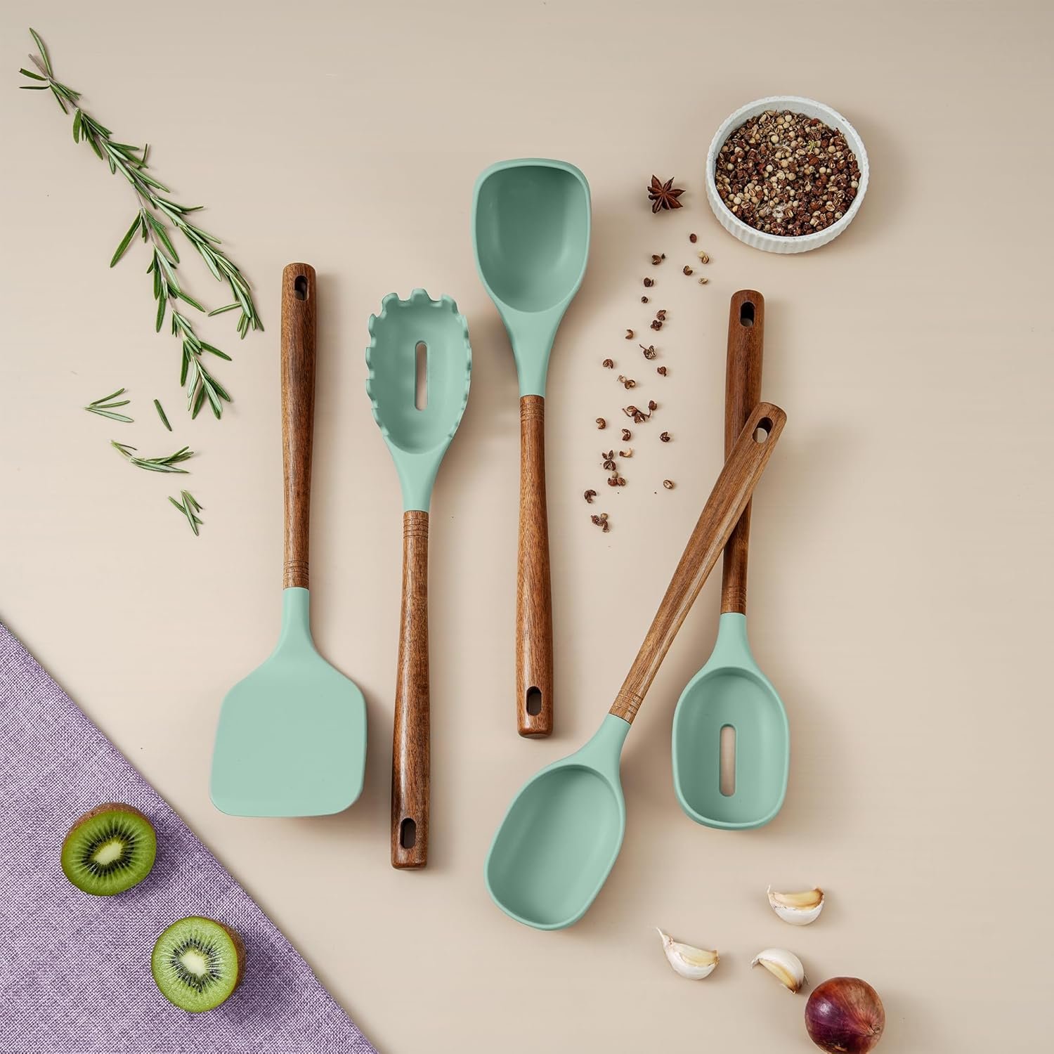 - Crafted for everyday cooking with a blend of acacia wood handles and food-grade silicone heads.