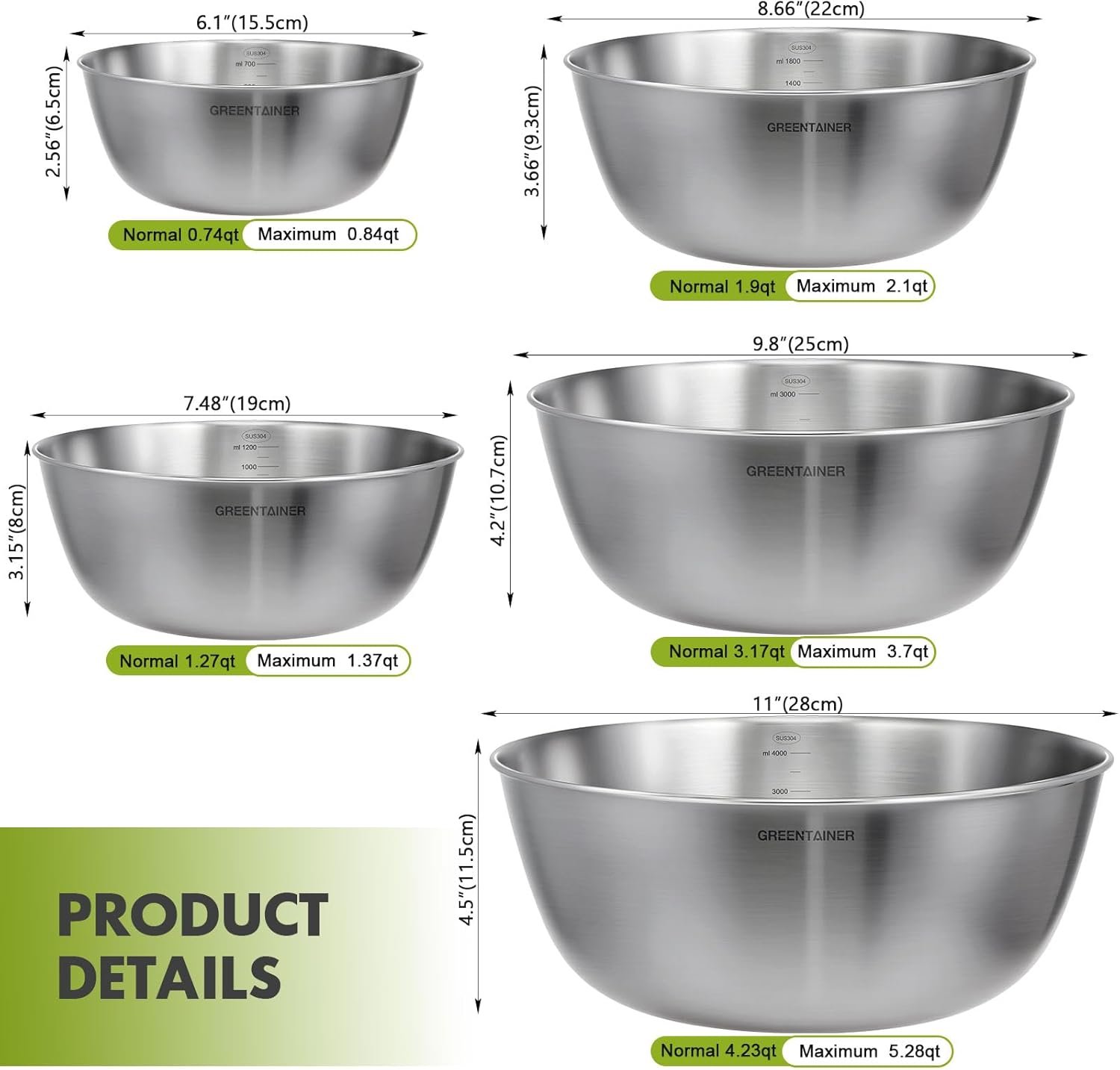 - Versatile 5-piece set: Gradually sized bowls for various kitchen tasks