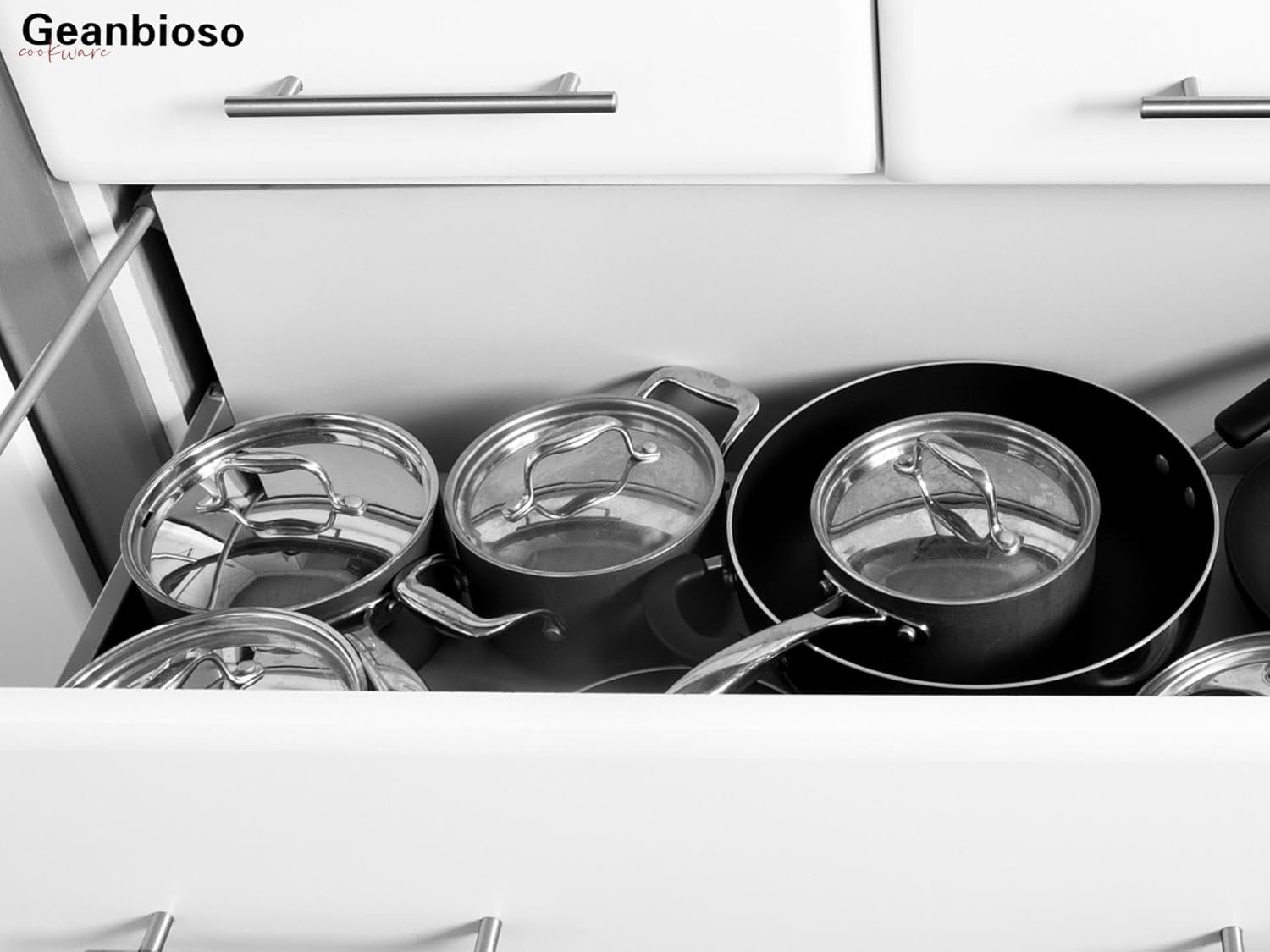 GEANDIOSO 5-ply stainless steel cookware set is designed for professional quality performance. Made from premium stainless steel, this cookware set ensures exceptional performance and durability.