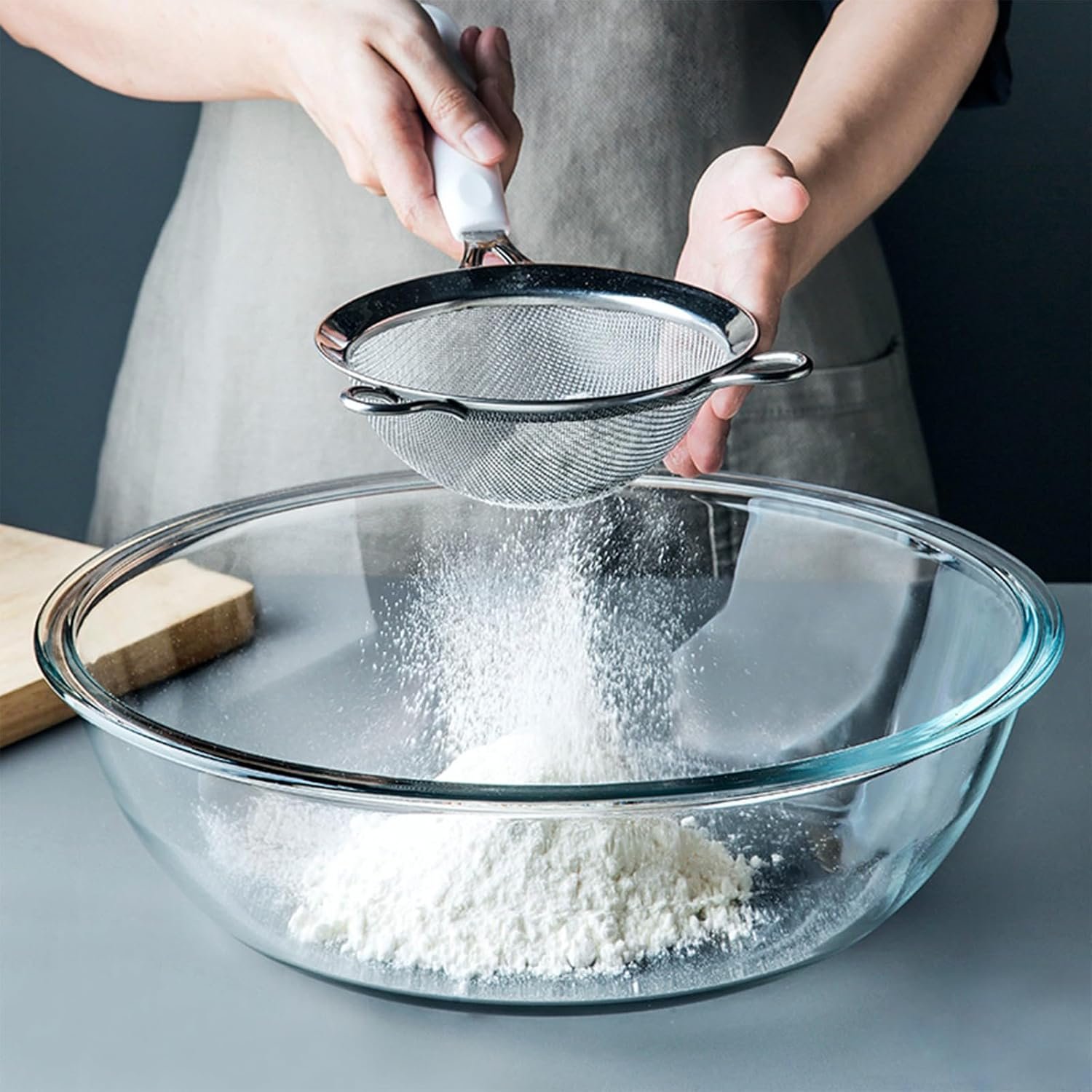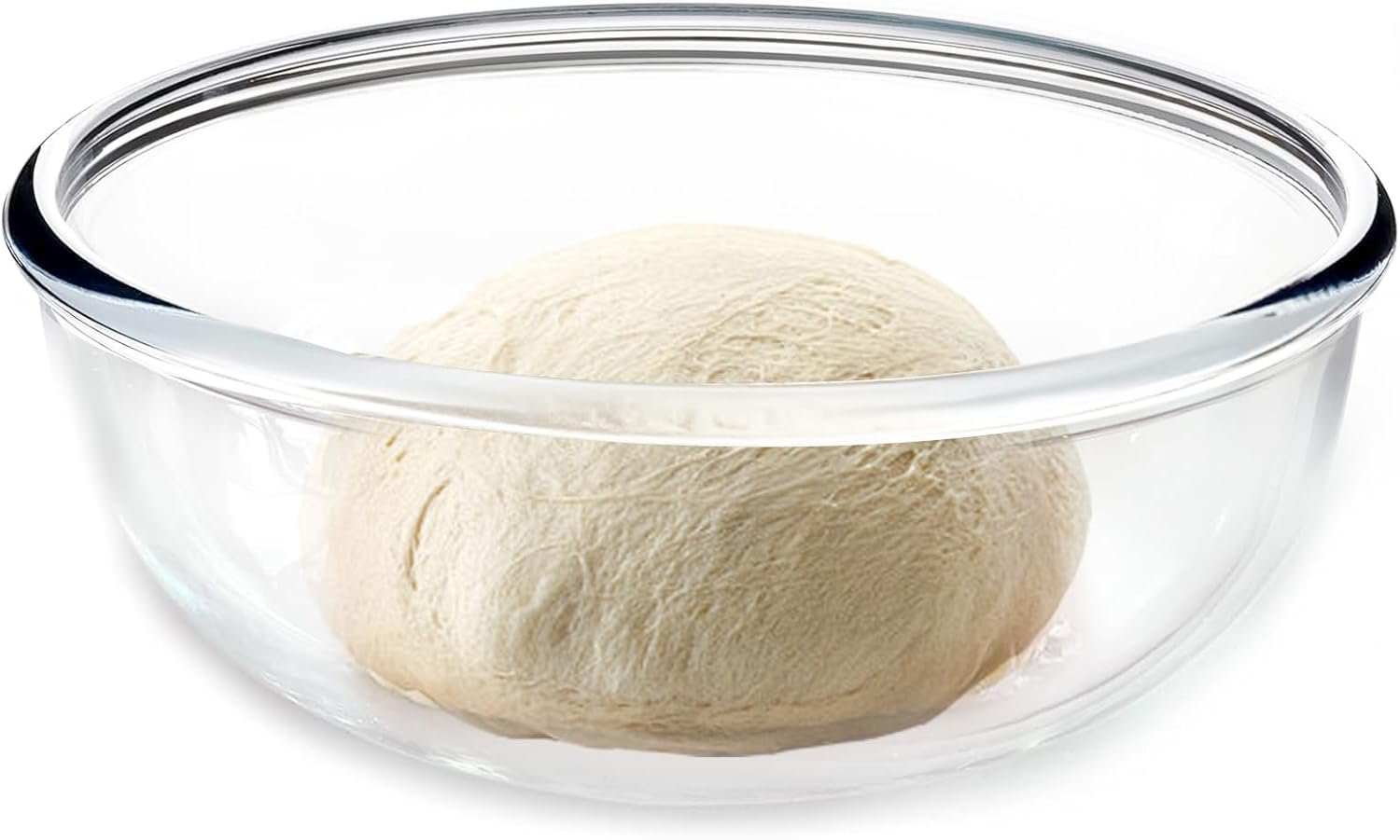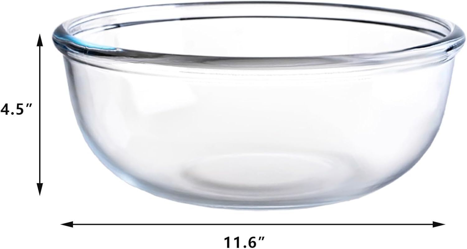 The 6.2quart/6200ml large glass mixing bowl is made of thick and sturdy glass, ensuring its durability and long-lasting performance. It is perfect for storing, mixing, and prepping food, and can be used for a variety of tasks such as mixing cake batters, cookie doughs, salads, eggs, sauces, and more.