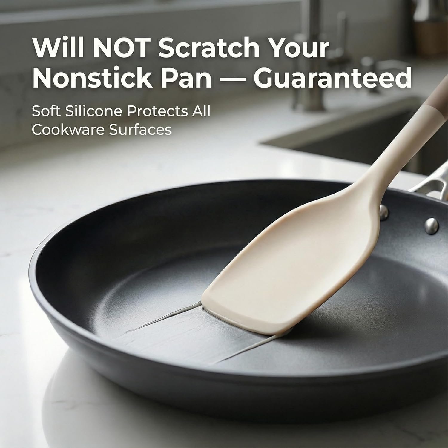 - Flexible yet sturdy silicone prevents scratches while stirring or flipping