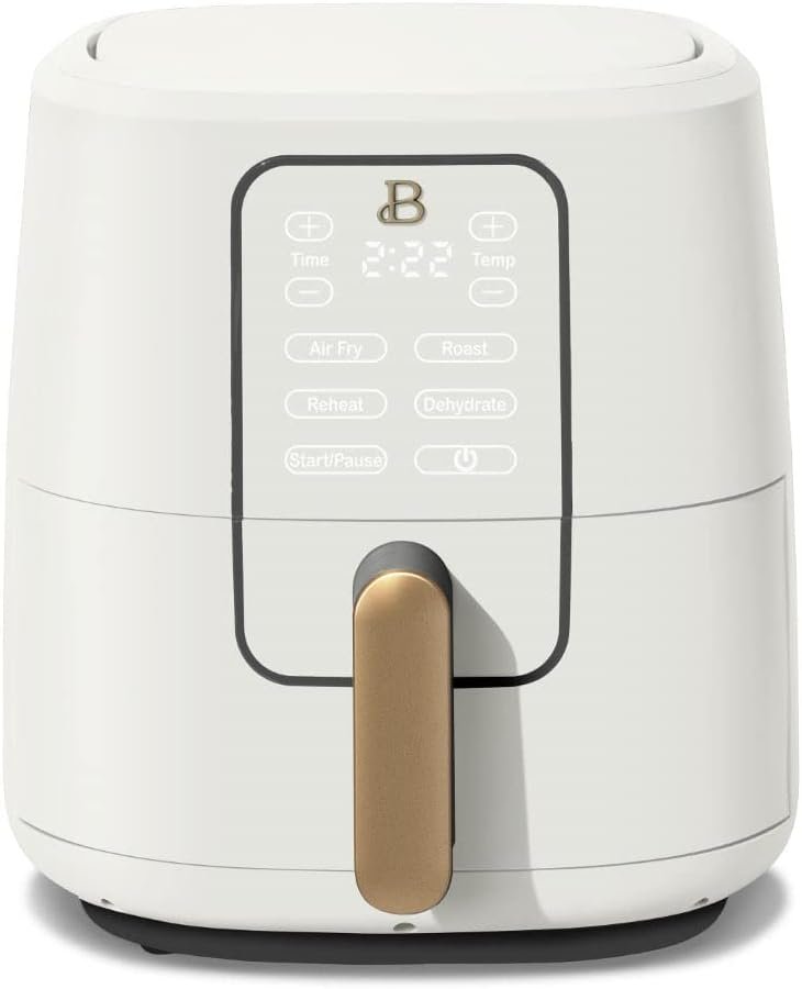 The DELICK 6QT Digital Air Fryer with Touch Activated Display is designed for easy meals on busy weeknights, allowing you to air fry, roast, reheat, or dehydrate your favorite meals. Created by Drew Barrymore, DELICK Kitchenware combines elegant design, contemporary colors, and modern silhouettes for high-performance appliances that look beautiful on your kitchen counter.