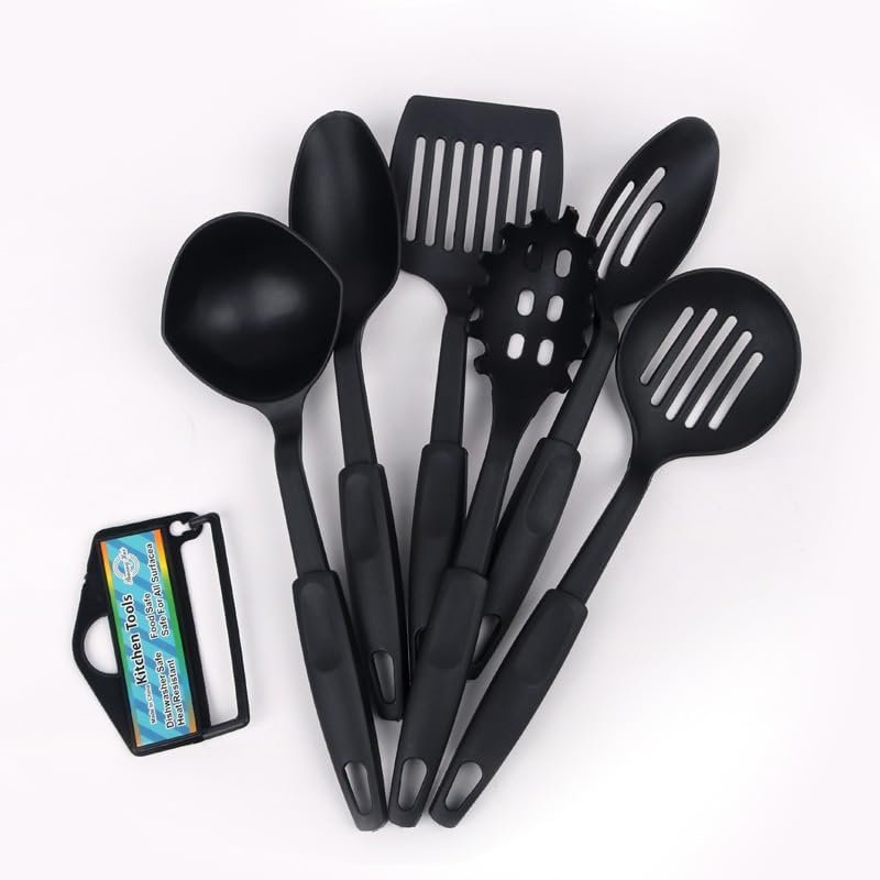 Home Cooking Utensil Sets 6pcs Heat Resistant Kitchen Utensils Set, Including Ladle, Spoon, Slotted Spoons, Spatula, Slotted Turner, Spaghetti Server, Food Grade Plastic Kitchenware Set, Home & Dorm Essentials