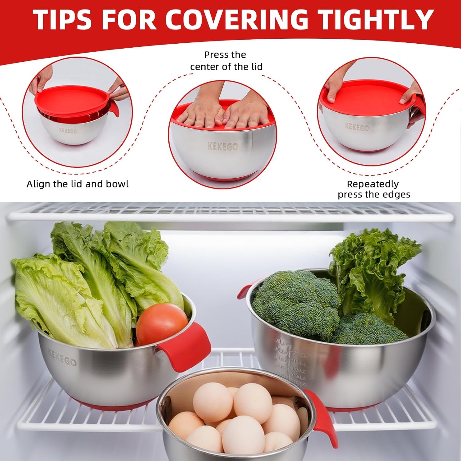 This stainless steel mixing bowl set is designed to provide you with everything you need for baking, cooking, prepping salads, and storing leftovers. The set includes three nesting bowls, a durable stainless steel strainer, and three tight-fitting lids, making it a comprehensive solution for your kitchen needs.