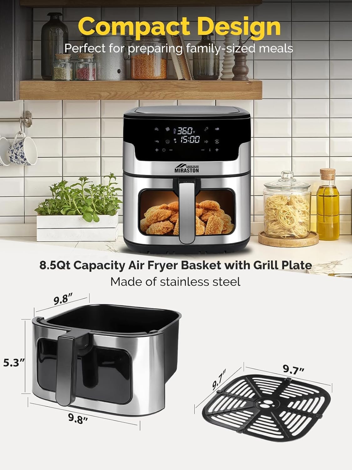 - Large 8.5QT family-size capacity that perfectly cooks meals for 5-6 people