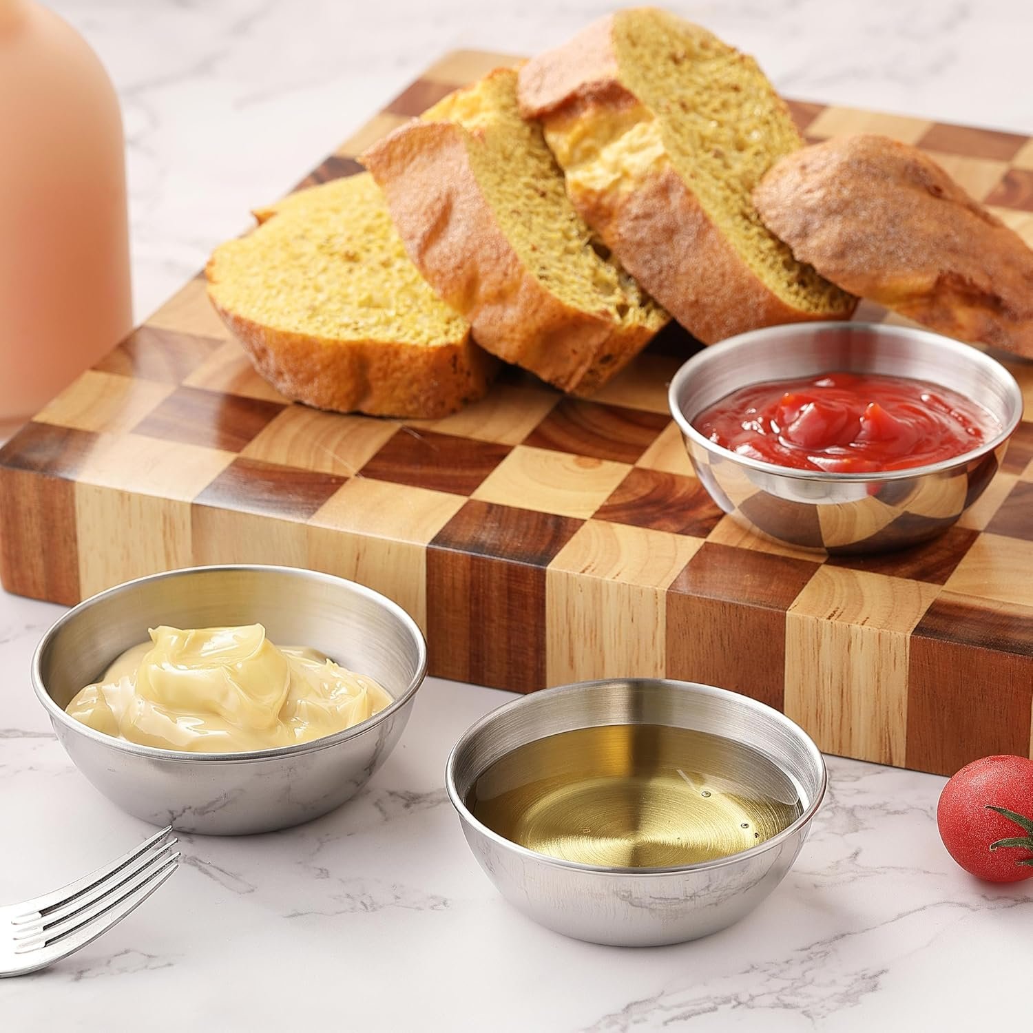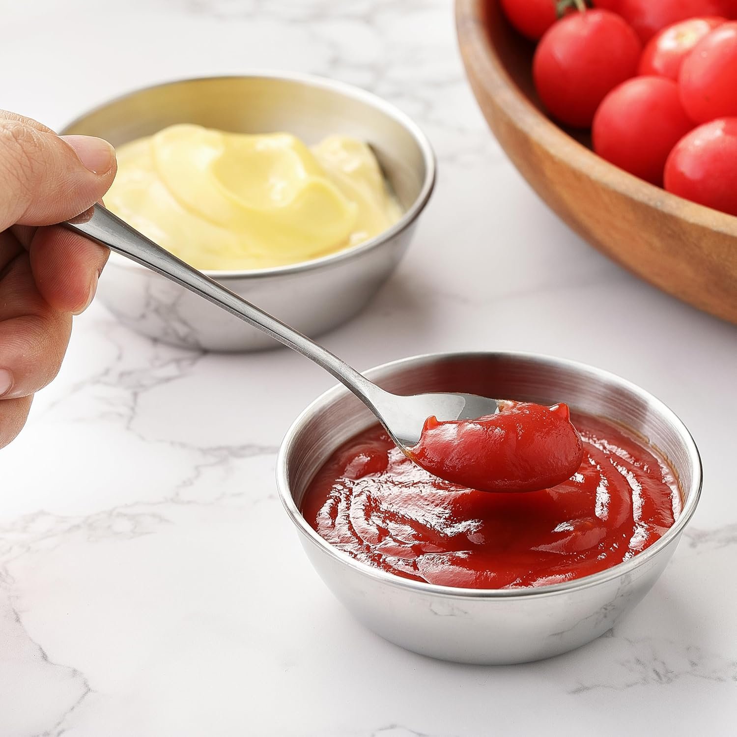 - Durable and High-Quality: Crafted from premium stainless steel, these dipping bowls are designed to be rust-resistant and incredibly durable. Their sturdy construction ensures the small stainless steel bowl will last through countless meals and gatherings, providing a long-term solution for your dining and entertaining needs.