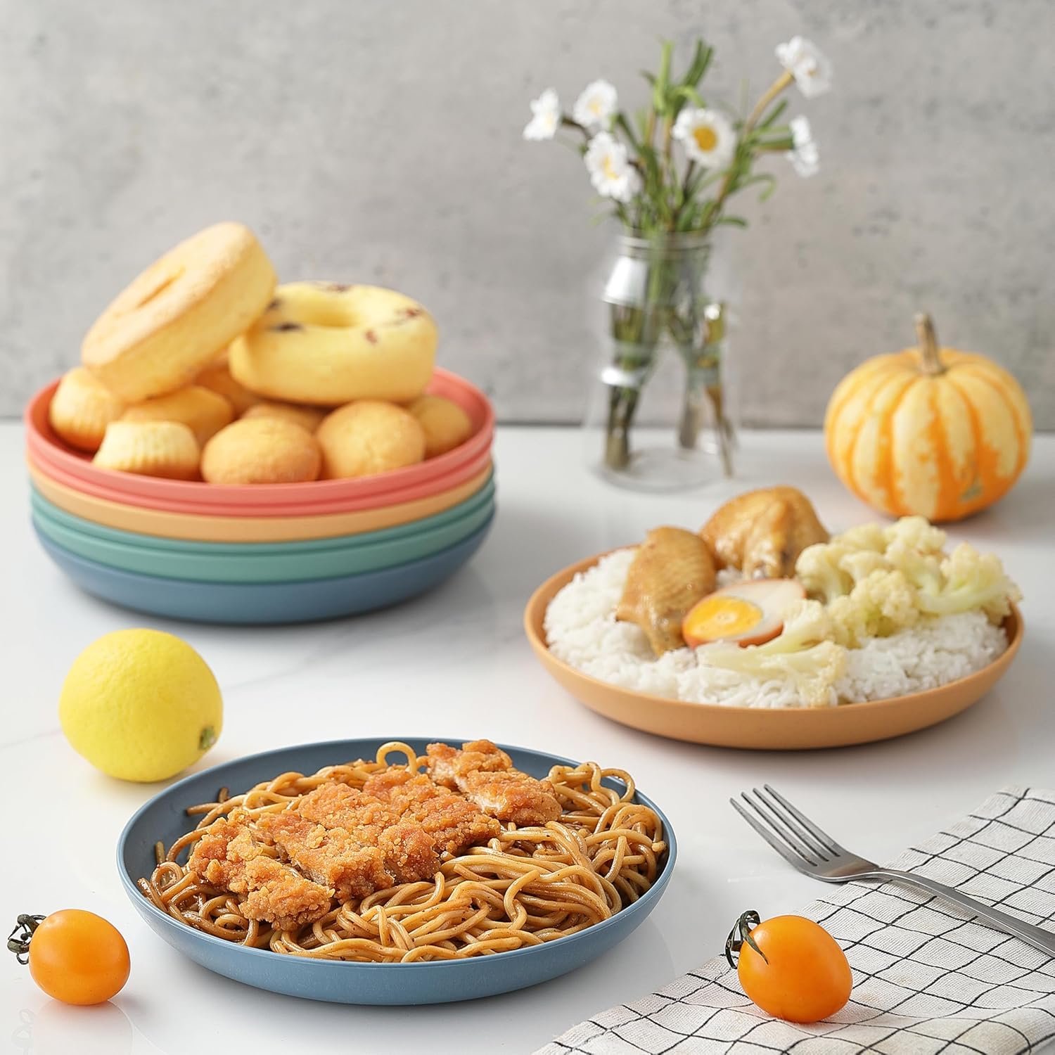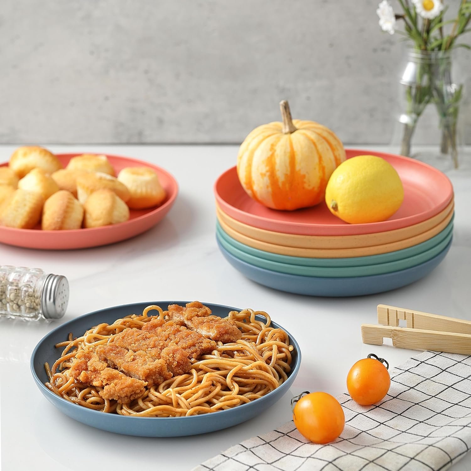 - Vibrant Colors & Versatile Size: With a 7.7-inch diameter, these small dinner plates are the ideal size for all types of meals, from breakfast to dinner. The wheat plates come in a range of stylish, modern colors that brighten up any table setting.