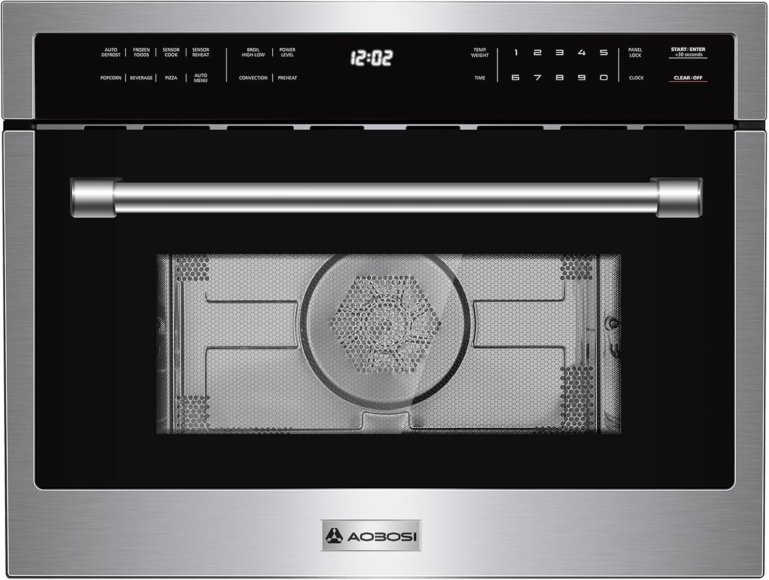 AAOBOSI 24 Inch Built in Microwave Convection Oven,1.6 Cu.Ft Wall Microwave Ovens Air Fryer Combos(upgraded), 1000Watt Power Sensor&Auto Cook, 12 Cooking Modes, Drop Down Door,Stainless Steel