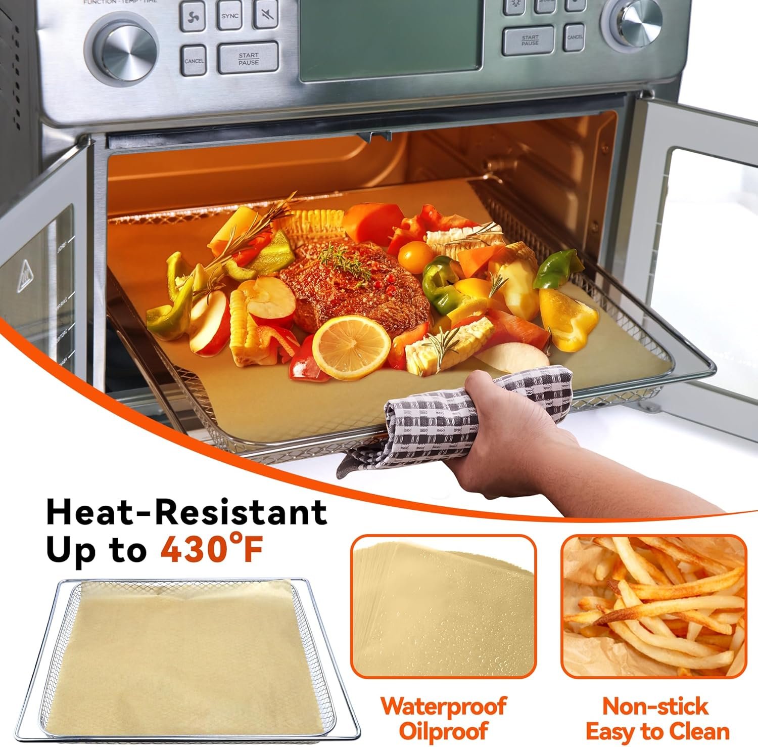 • 100Pcs disposable parchment paper sheets for easy cleanup