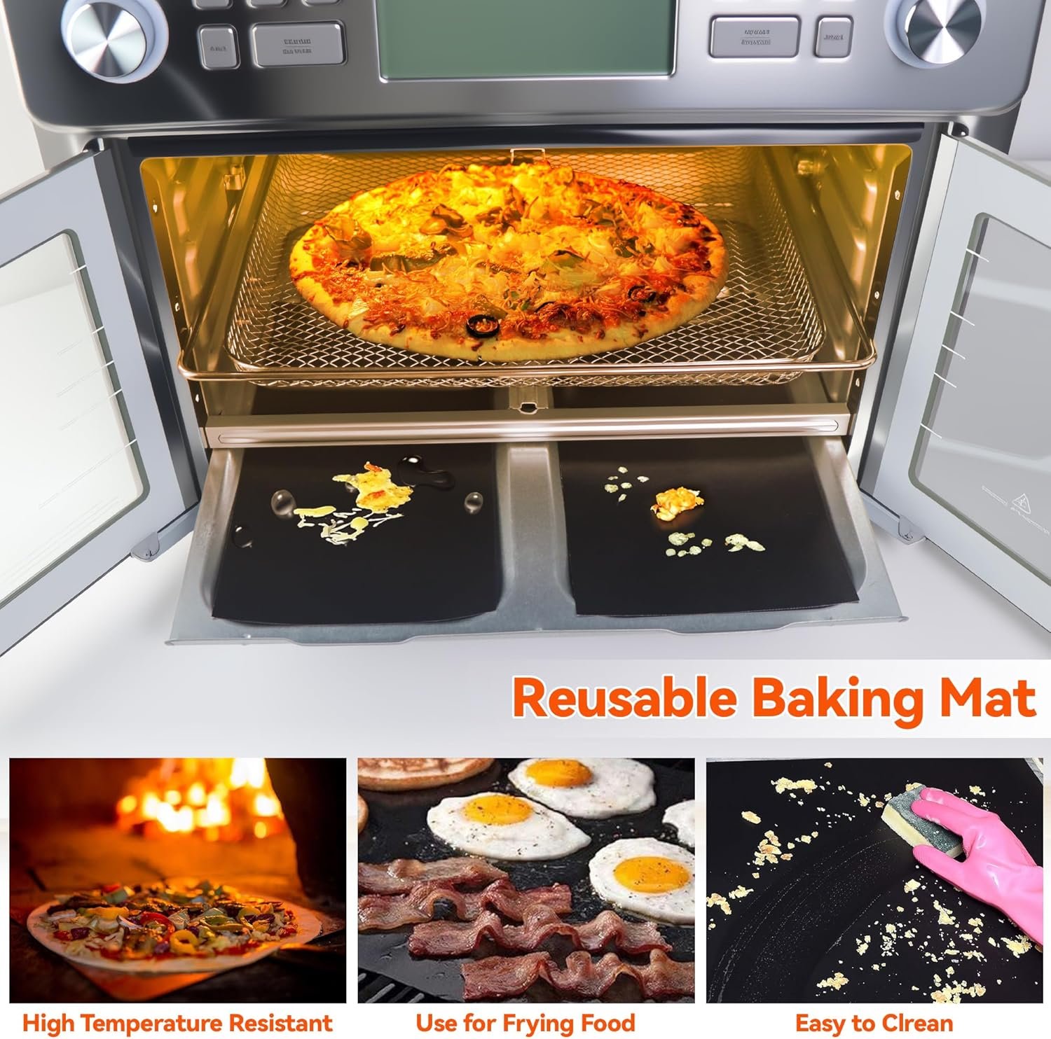 • 4Pcs reusable Teflon mats for non-stick cooking