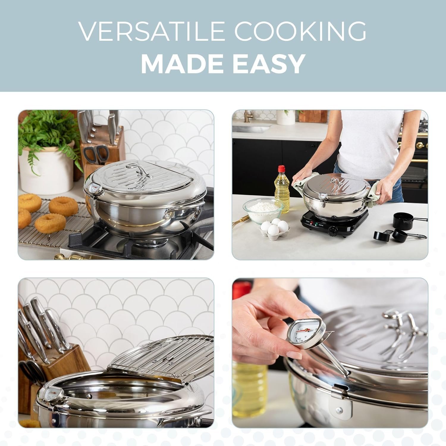 - Integrated oil thermometer for precise heat monitoring