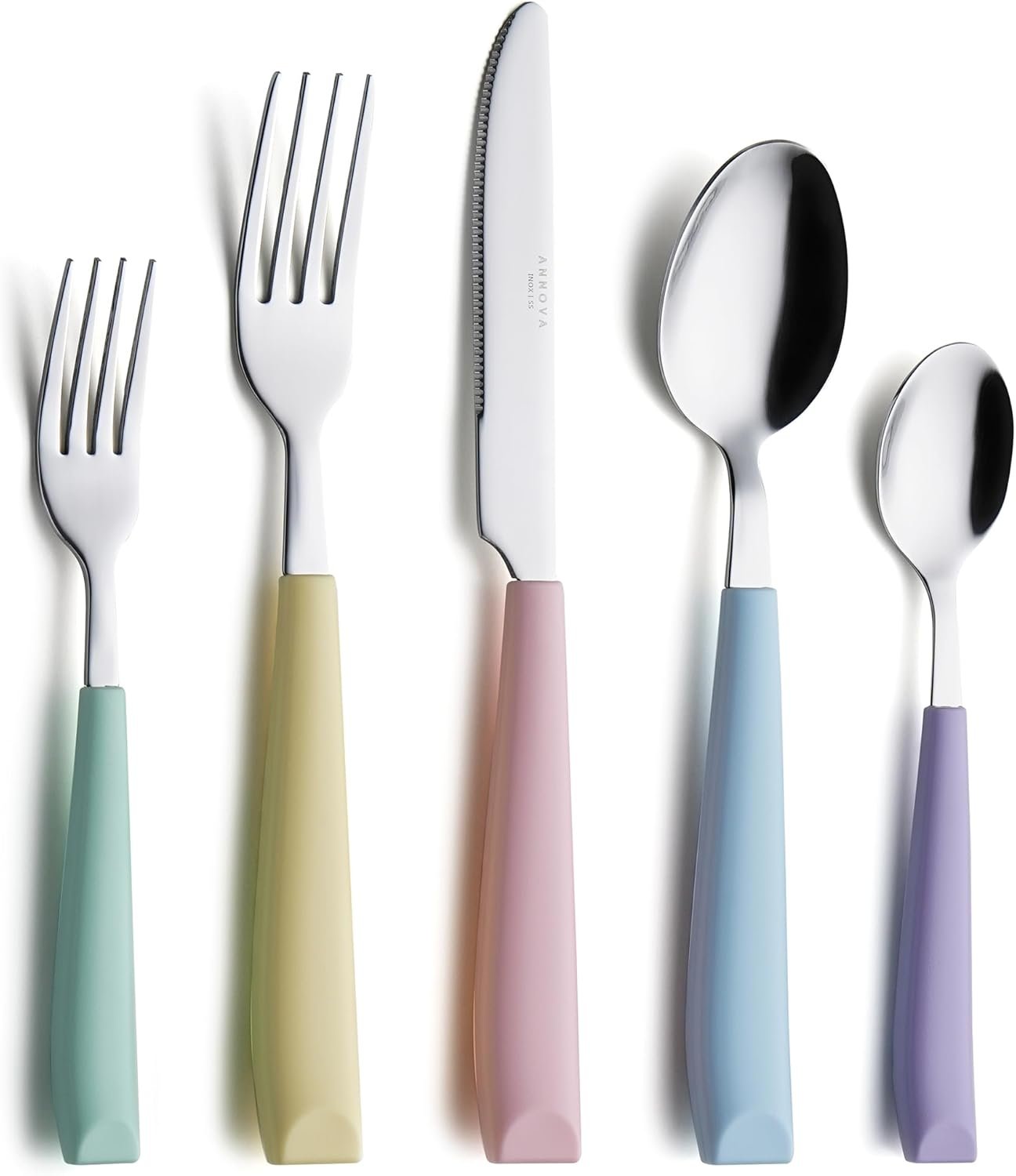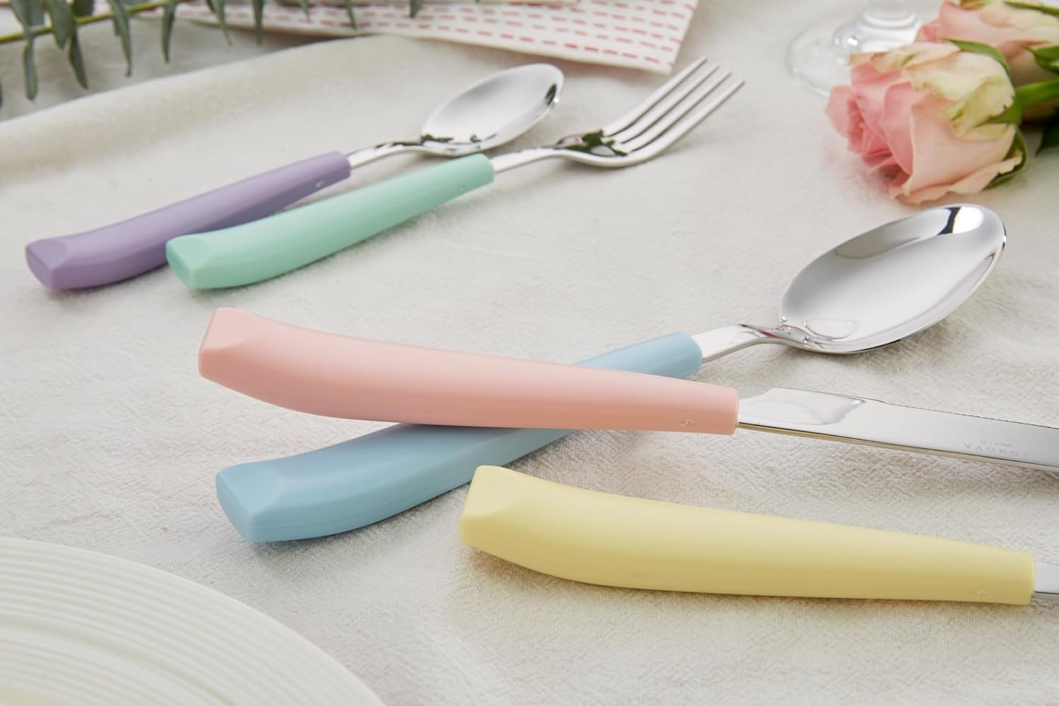- Colorful Plastic Handles: Modern, vibrant, and colorful handles add a playful yet elegant touch to your table setting.