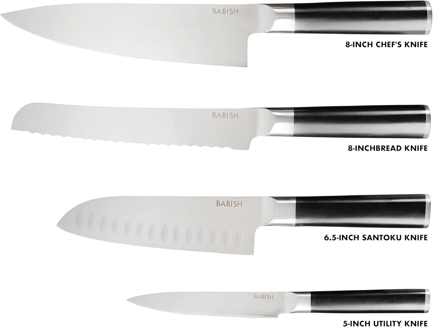 Babish 5-Piece German Steel Cutlery Set with Magnetic Ashwood Knife Stand