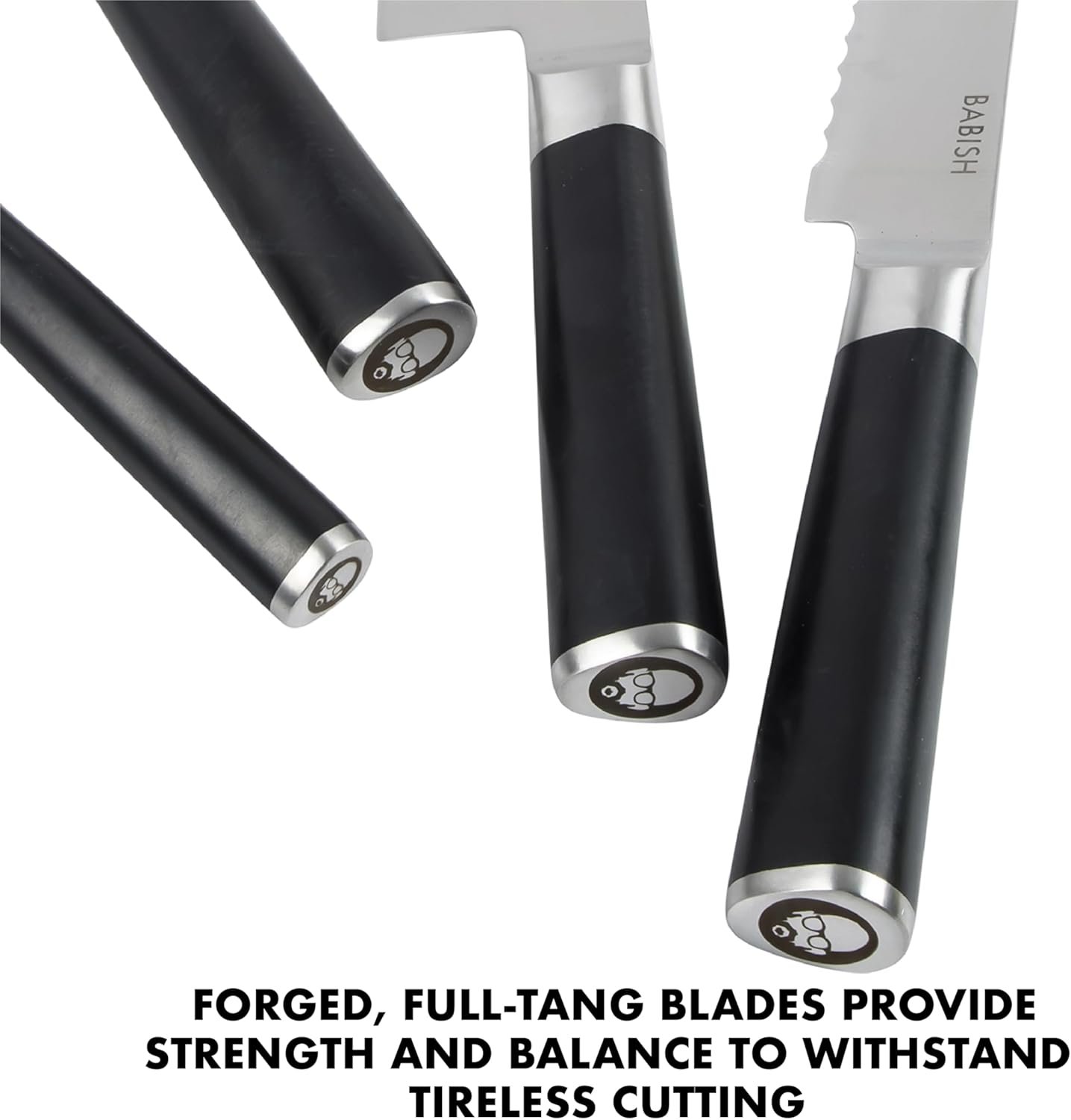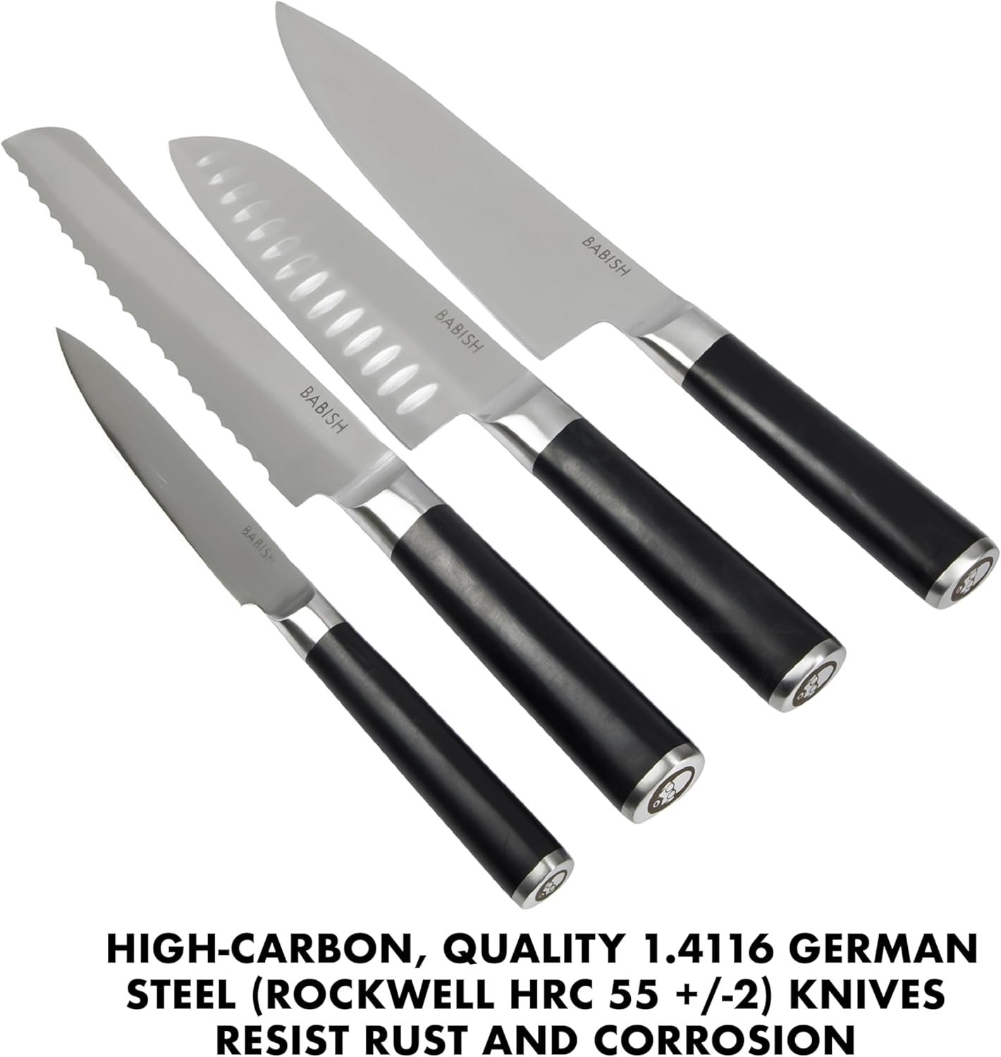 The set offers four essential knives – all forged from high-carbon German steel – to maintain maximum sharpness and to resist rust and corrosion due to everyday use and constant contact with heat, ingredients, and other elements. Featuring a seamless ABS handle, each knife is crafted for function and comfort to tackle any cutting task with ease and efficiency. The set includes: