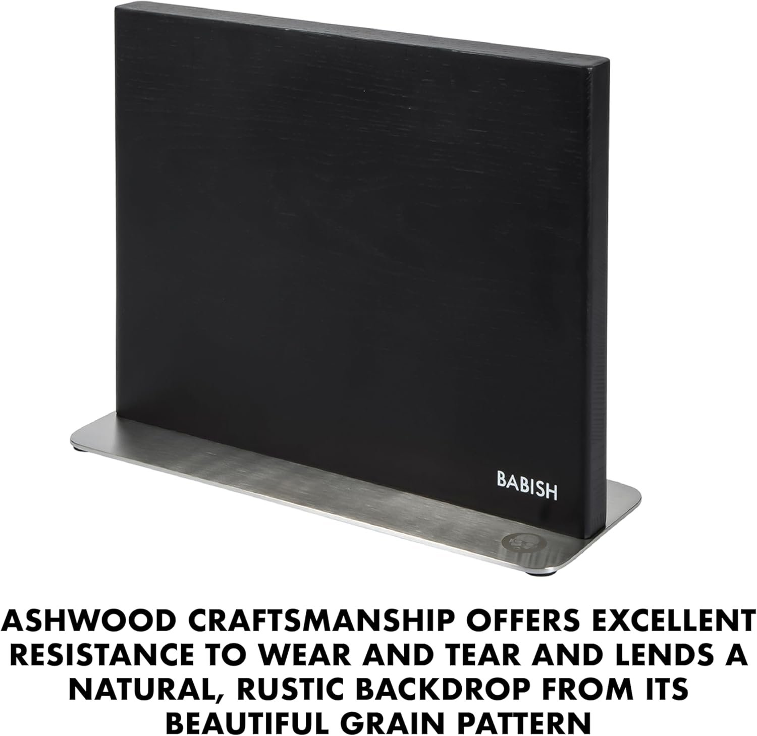 The magnetic ashwood knife block provides a modern solution to store your cutlery collection. The open design showcases each knife’s construction – from the tip of the blade, the beveled edge down to the bolster and base of the handle – while helping keep the blades’ edges scratch-free. Ashwood craftsmanship offers excellent resistance to wear and tear and lends a natural, rustic backdrop from its beautiful grain pattern. The slim but sturdy stainless steel base saves space and offers stability when storing and displaying up to 14 knives on both sides.