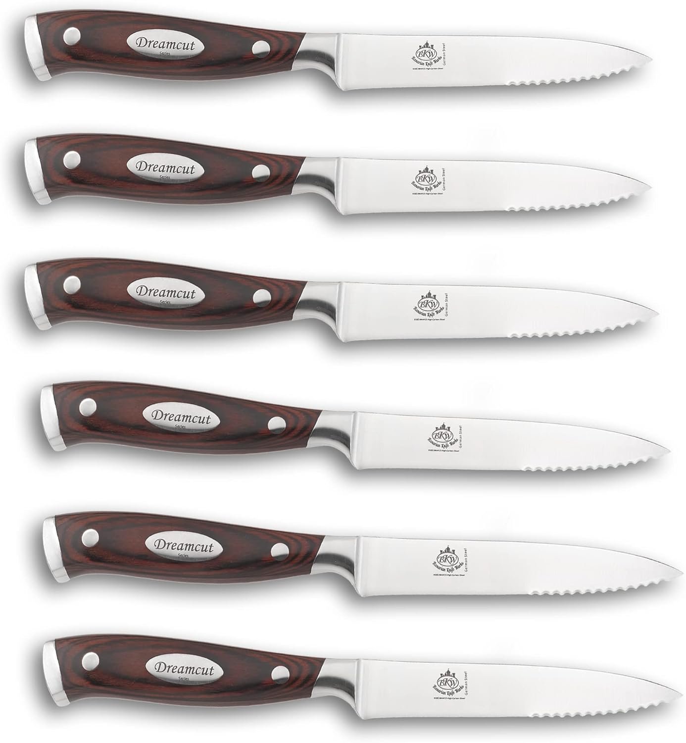 Bavarian Knife Works is proud to introduce its new DreamCut Series, designed for people who love to cook. The Dreamcut line is made from the highest quality German steel, is perfectly balanced, lightweight, and glides through food effortlessly. It features beautiful pakkawood handles, smooth edges, and a comfortable hand feel, making it very comfortable compared to other knives.