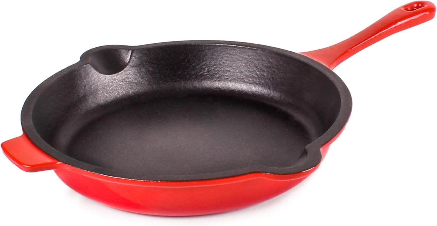 Cast Iron 11″ Grill Pan & 10″ Fry Pan, Red