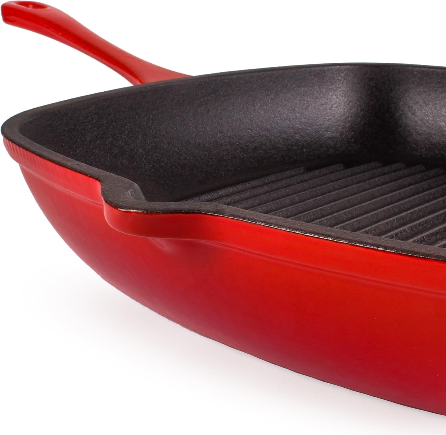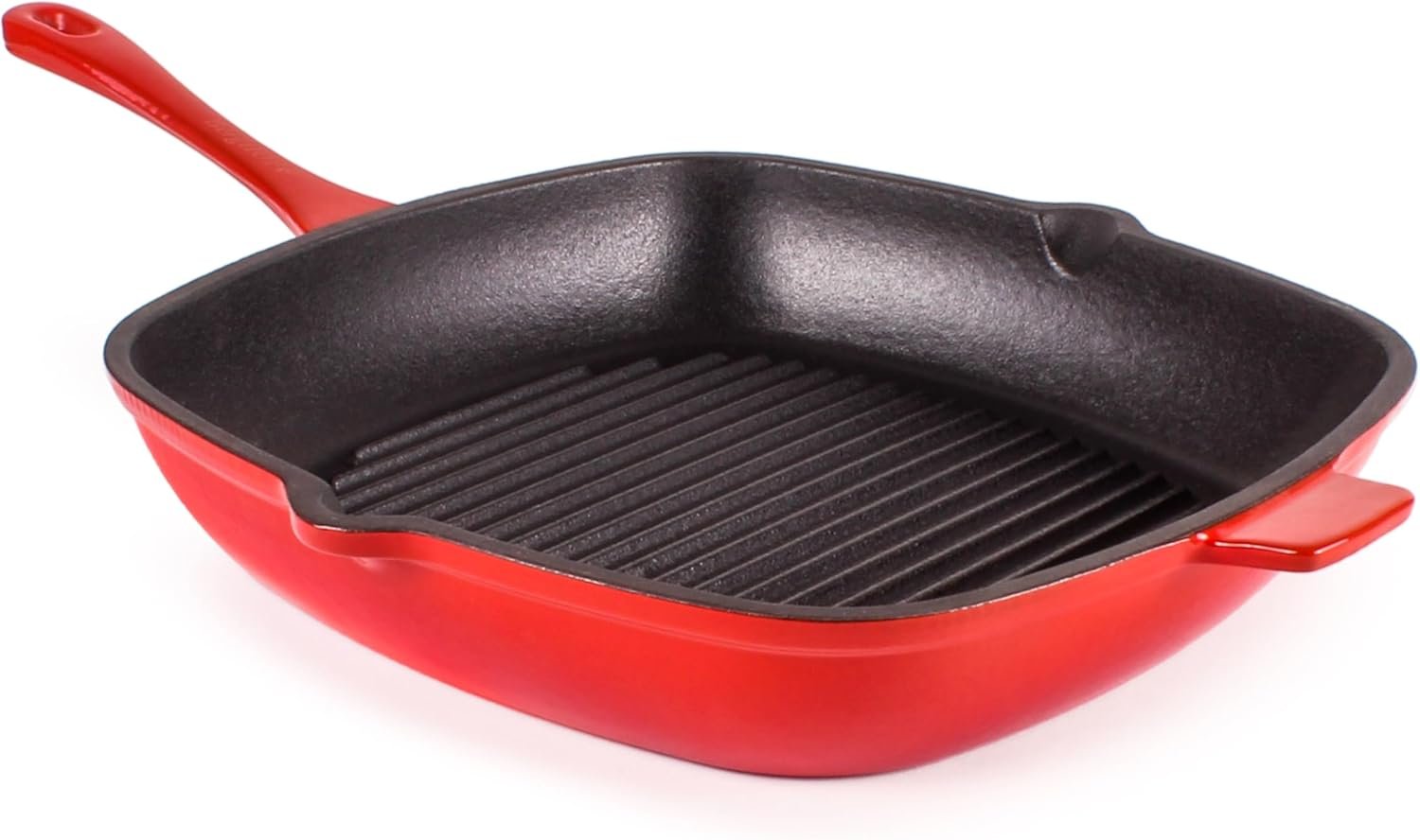 Made of durable Cast Iron with Matt enamel finish, Safe grip handle. Integrated grill risers with immaculate grill marks