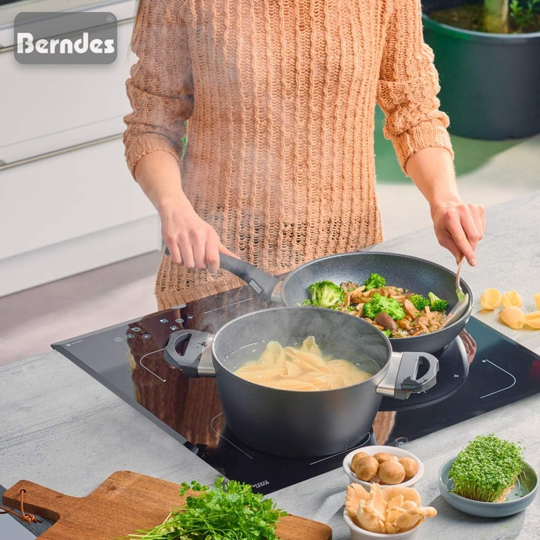The Berndes cooking pot set is a comprehensive and practical collection of cookware designed to meet the needs of professional and home cooks alike. This set is well-prepared for any occasion, allowing users to prepare dishes with ease and professionalism.