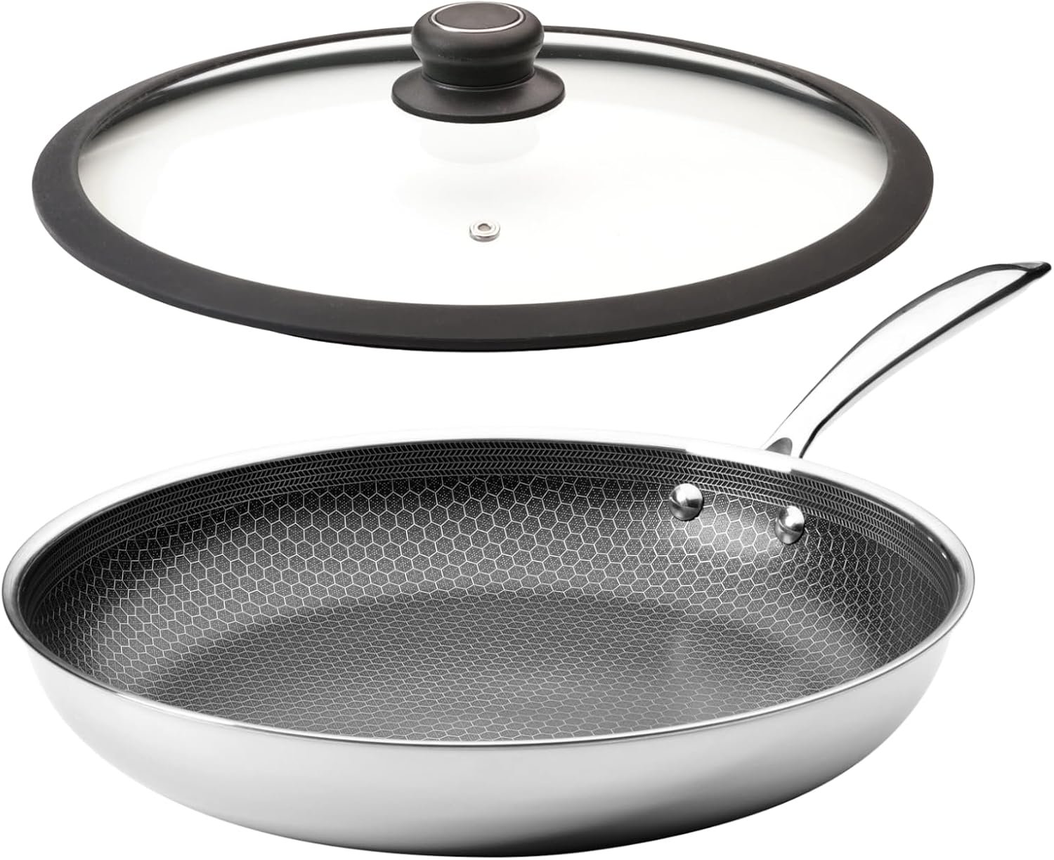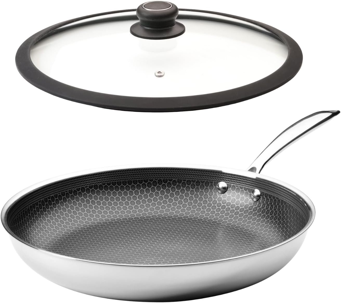 - Cutting-edge hybrid design combining stainless steel durability with nonstick frying pan convenience