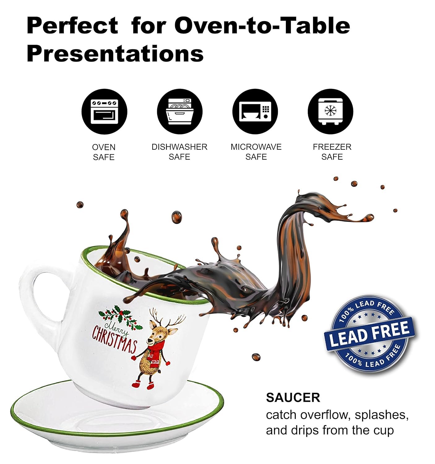 - Lead-free, cadmium-free, non-toxic, and perfectly safe to use in microwave, dishwasher, or freezer