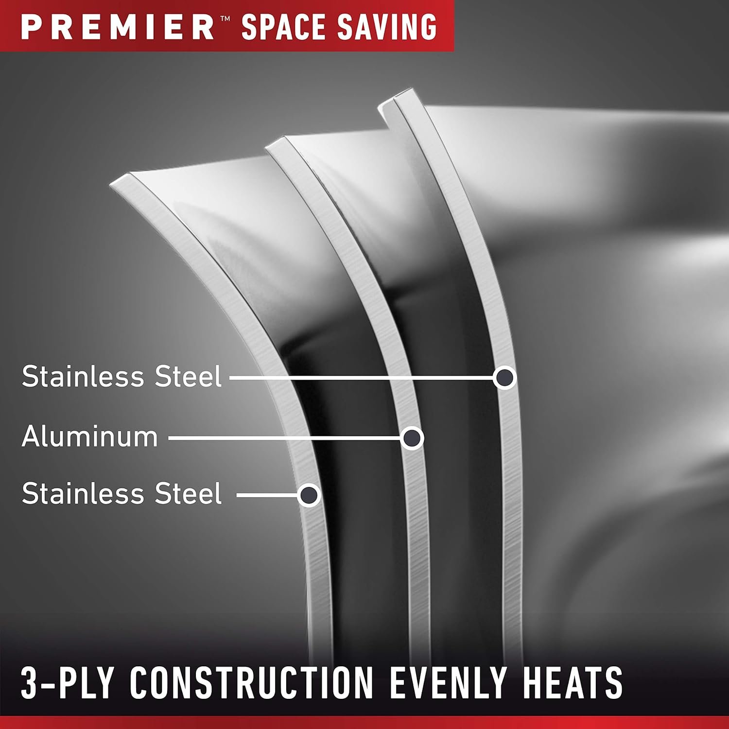 - 3-layer metal construction with a heavy-gauge aluminum core for even heat distribution
