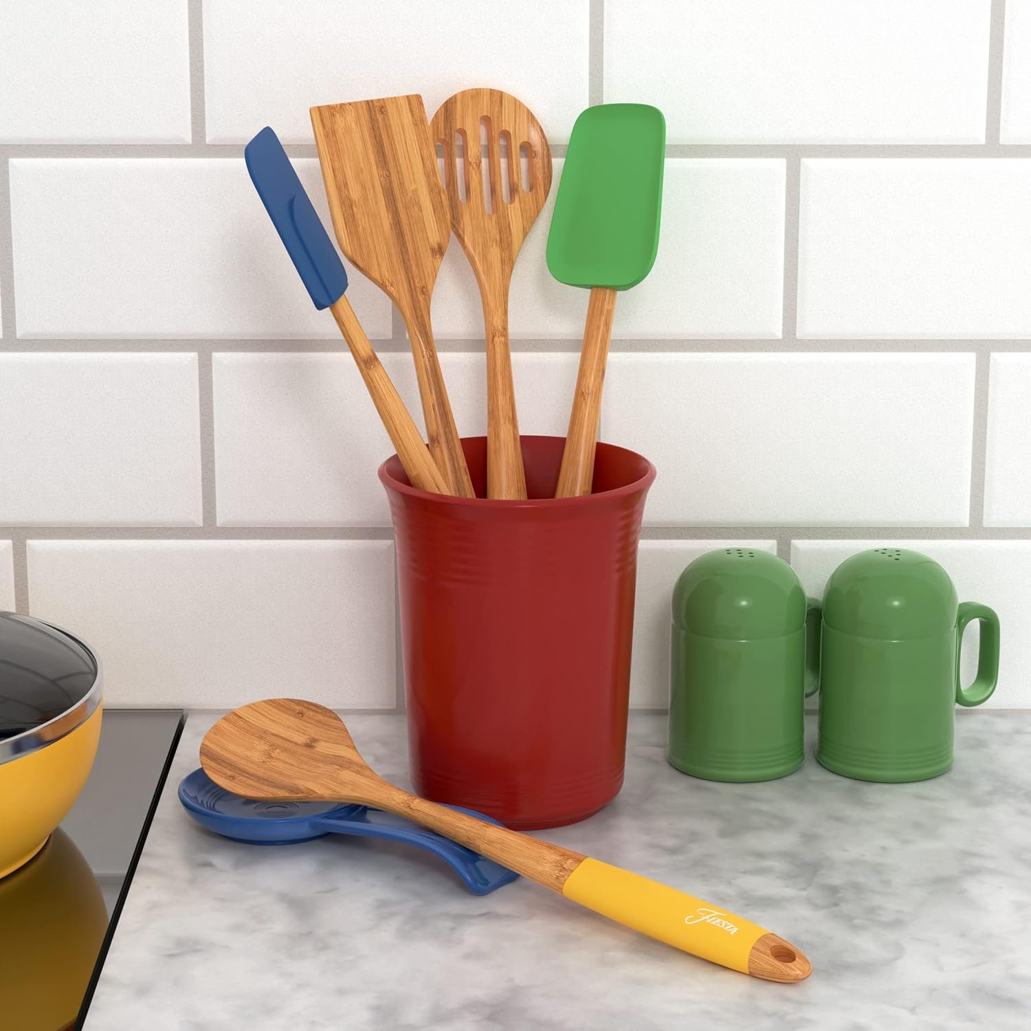 • A variety of colors, including Tangerine, Scarlet, Lemongrass, Turquoise, and Cobalt, adding a pop of color to your kitchen