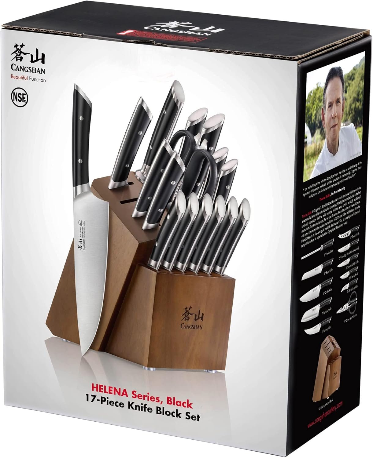 Home Block Knife Sets Cangshan HELENA Series German Steel Forged Knife Block Set (17-Piece, Black)