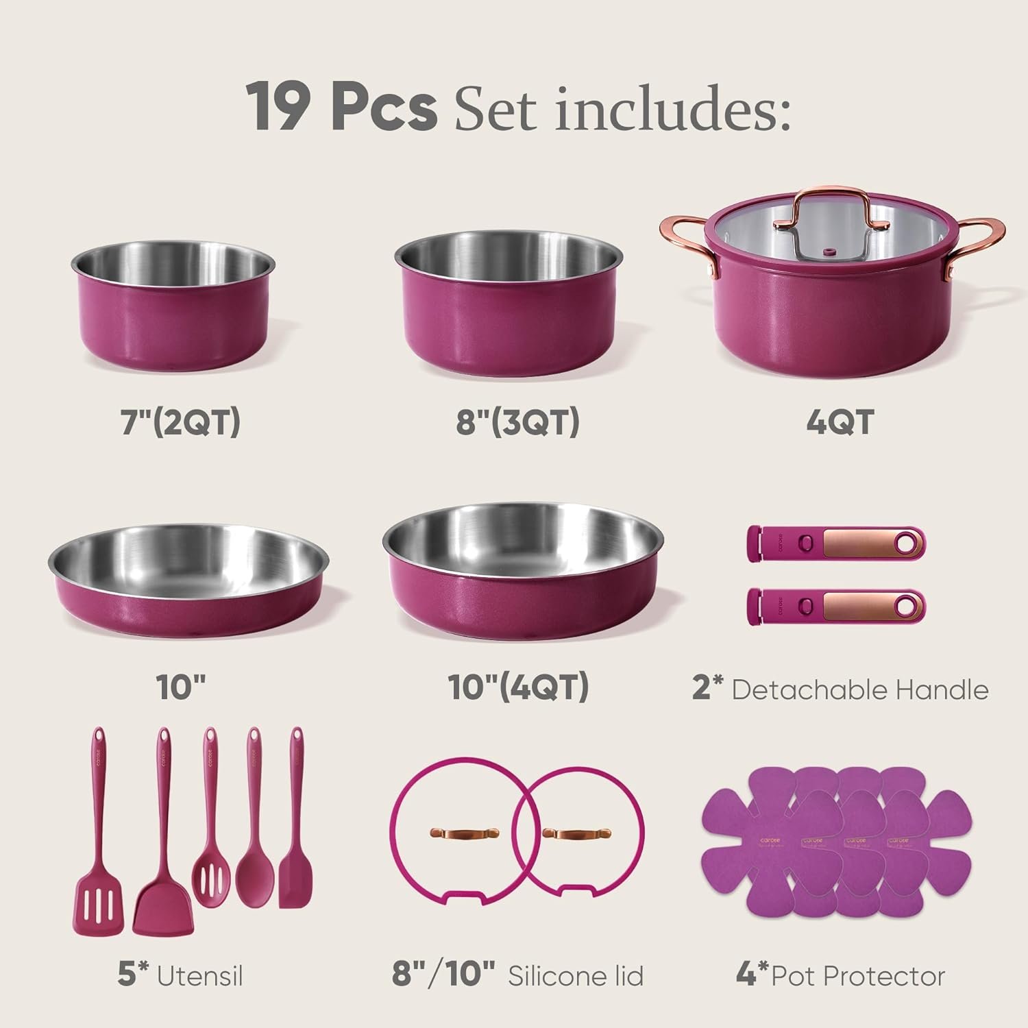 CAROTE cookware is designed to make cooking and serving easier and more efficient. With its space-saving design, oven-to-table versatility, and elegant serving capabilities, this cookware set is perfect for small kitchens, RVs, and those who value organized storage.