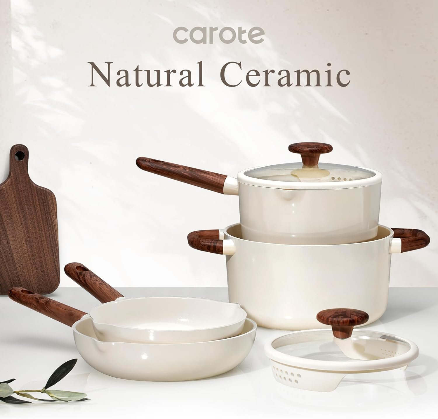 CAROTE Ceramic Cookware Sets, Pots and Pans Set Non stick, Non Toxic Healthy Induction Cookware, 14 Pcs Nonstick Kitchen Pots and Pans Set, PFAS PTFE Free