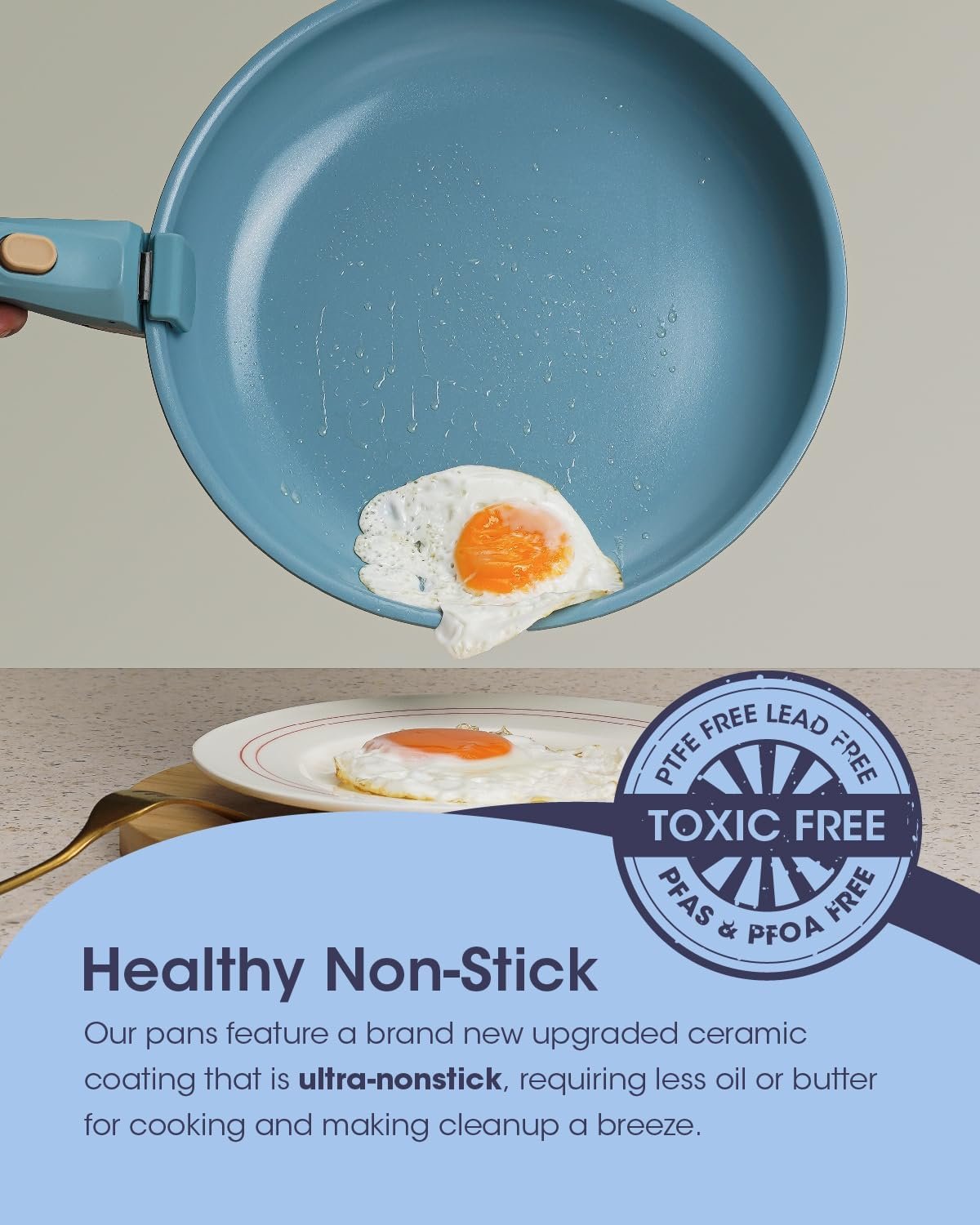 • PTFE, PFOA, and PFAS-free for toxin-free meals
