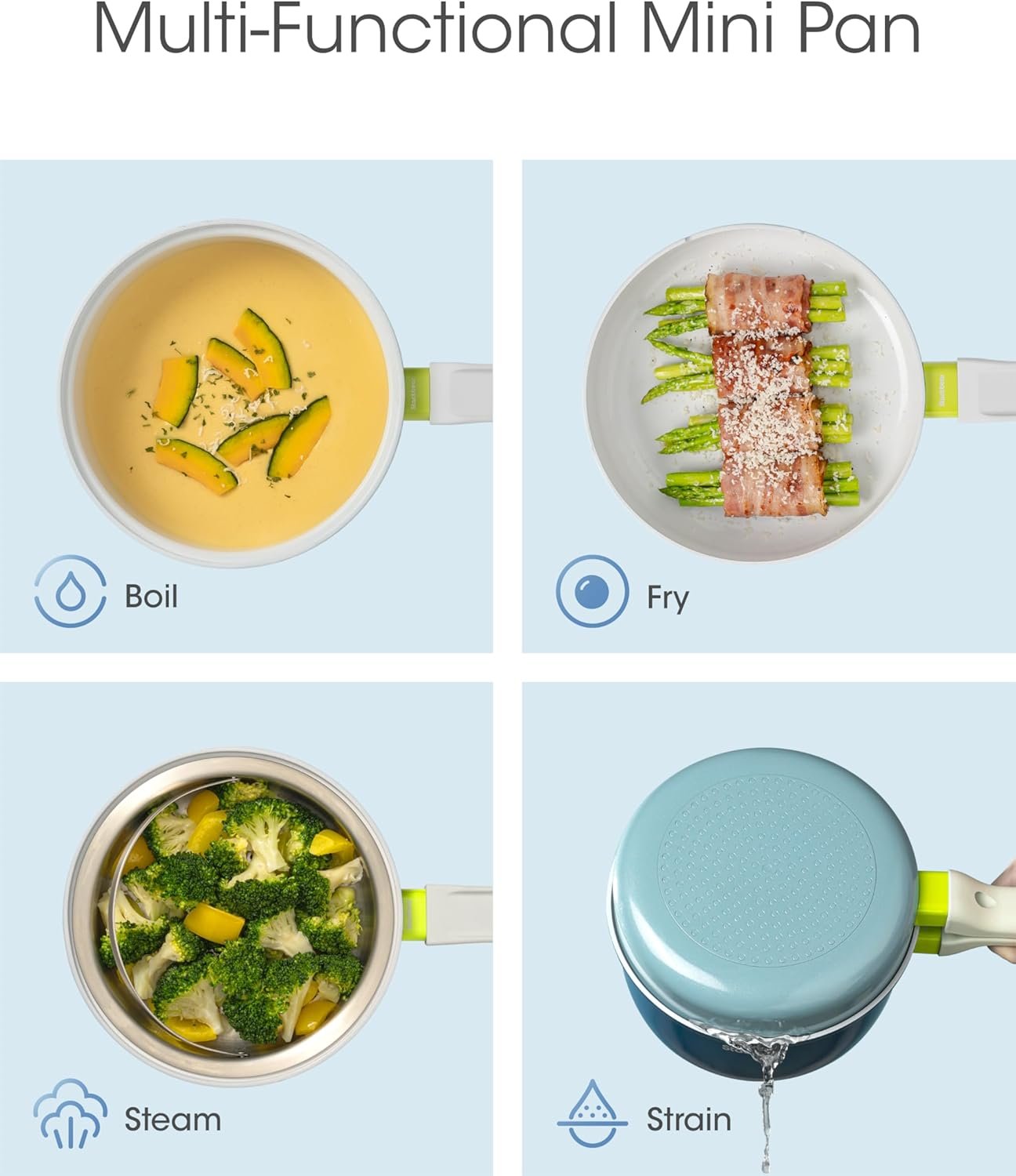 • Multi-functional cookware set for various cooking tasks